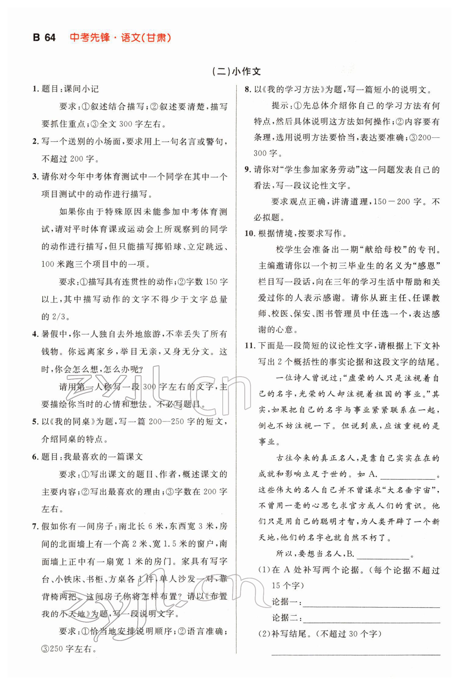 2022年中考先锋语文人教版甘肃专版吉林出版集团