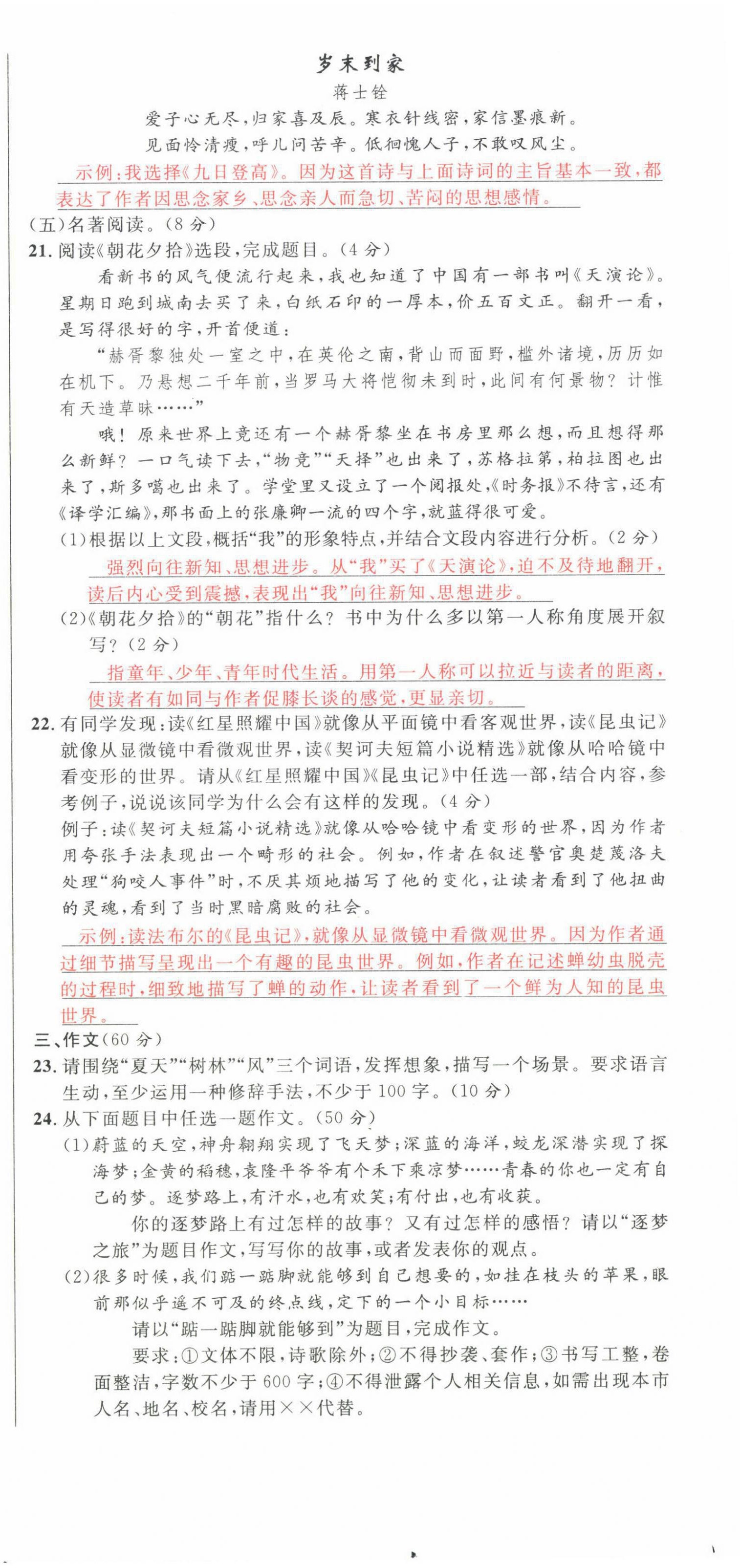 注:目前有些书本章节名称可能整理的还不是很完善,但都是按照顺序排列的,请同学们按照顺序仔细查找。练习册 2022年中考先锋语文人教版甘肃专版吉林出版集团 答案主要是用来给同学们做完题方便对答案用的,请勿直接抄袭。