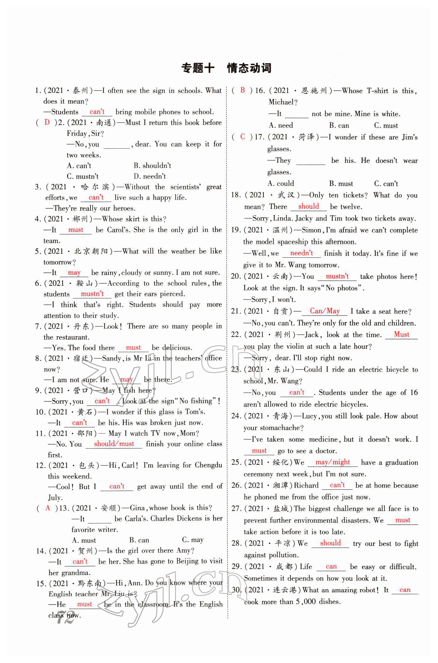 - 参考答案第21页