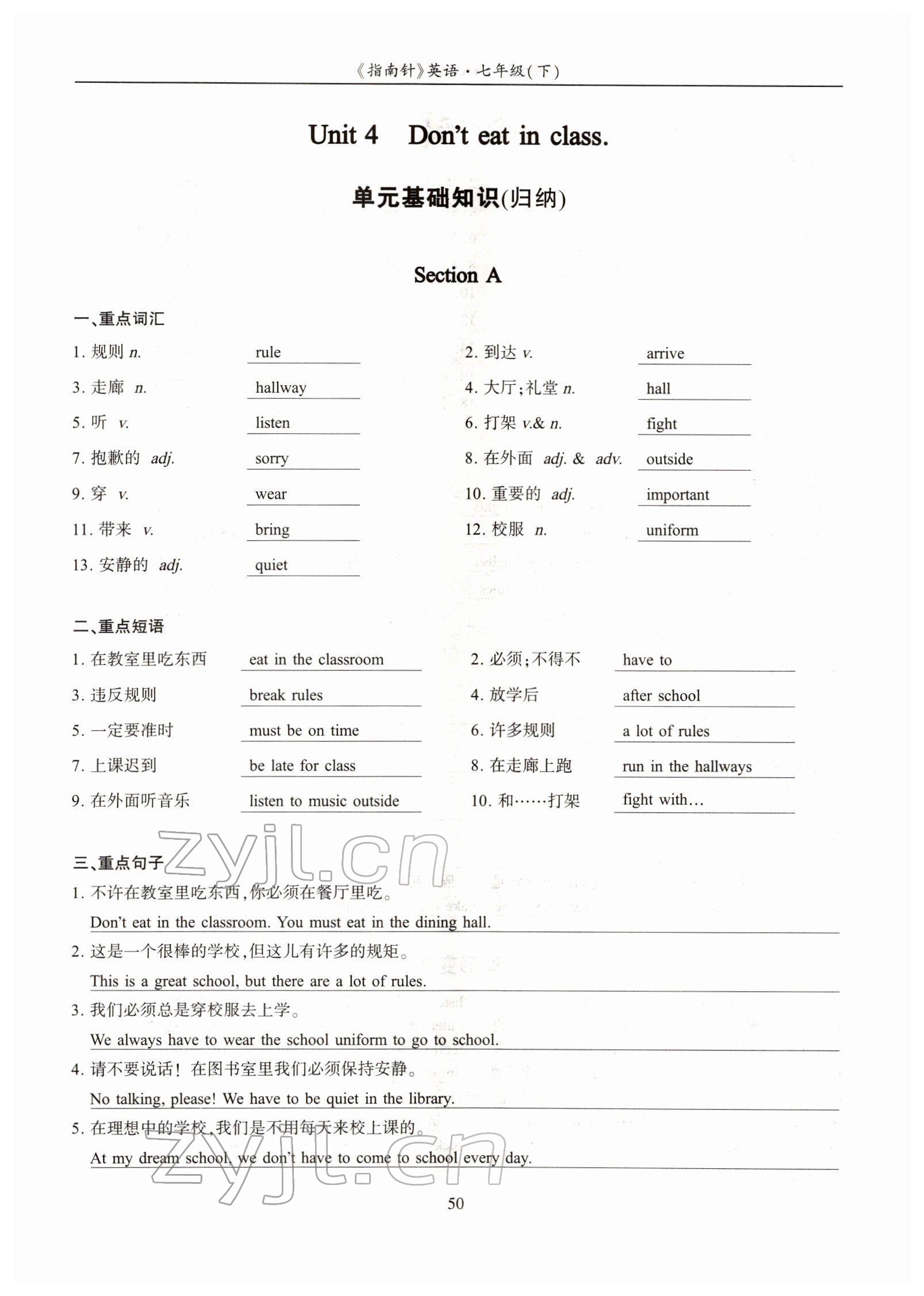 注:目前有些书本章节名称可能整理的还不是很完善,但都是按照顺序排列的,请同学们按照顺序仔细查找。练习册 2022年指南针高分必备七年级英语下册人教版四川专版 答案主要是用来给同学们做完题方便对答案用的,请勿直接抄袭。