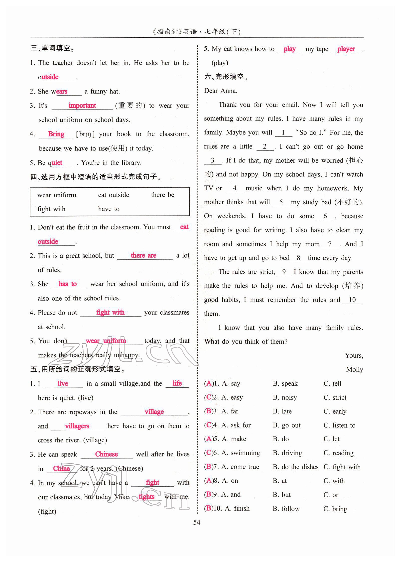 注:目前有些书本章节名称可能整理的还不是很完善,但都是按照顺序排列的,请同学们按照顺序仔细查找。练习册 2022年指南针高分必备七年级英语下册人教版四川专版 答案主要是用来给同学们做完题方便对答案用的,请勿直接抄袭。