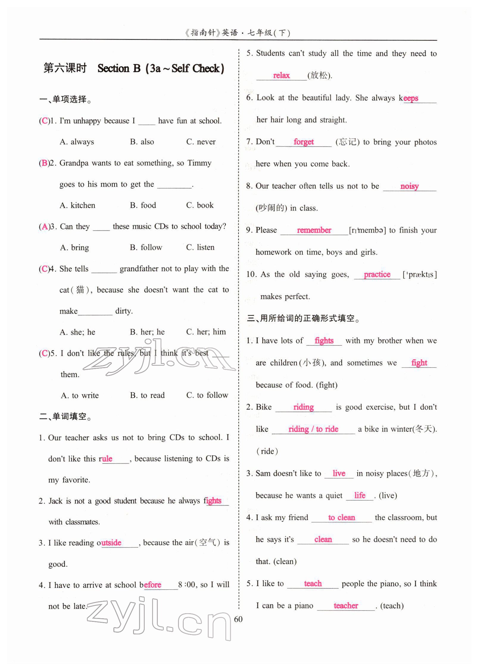 注:目前有些书本章节名称可能整理的还不是很完善,但都是按照顺序排列的,请同学们按照顺序仔细查找。练习册 2022年指南针高分必备七年级英语下册人教版四川专版 答案主要是用来给同学们做完题方便对答案用的,请勿直接抄袭。