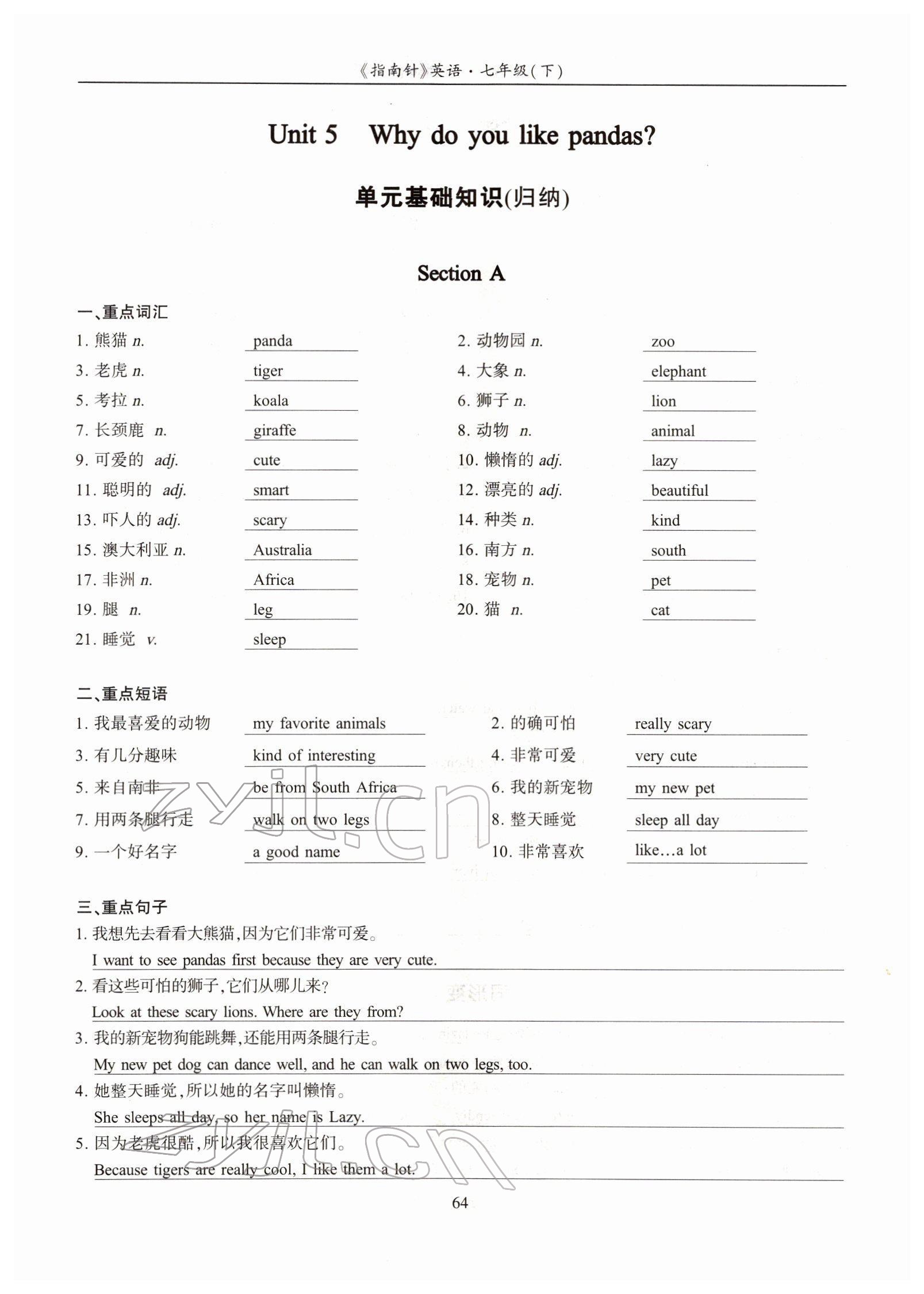 注:目前有些书本章节名称可能整理的还不是很完善,但都是按照顺序排列的,请同学们按照顺序仔细查找。练习册 2022年指南针高分必备七年级英语下册人教版四川专版 答案主要是用来给同学们做完题方便对答案用的,请勿直接抄袭。