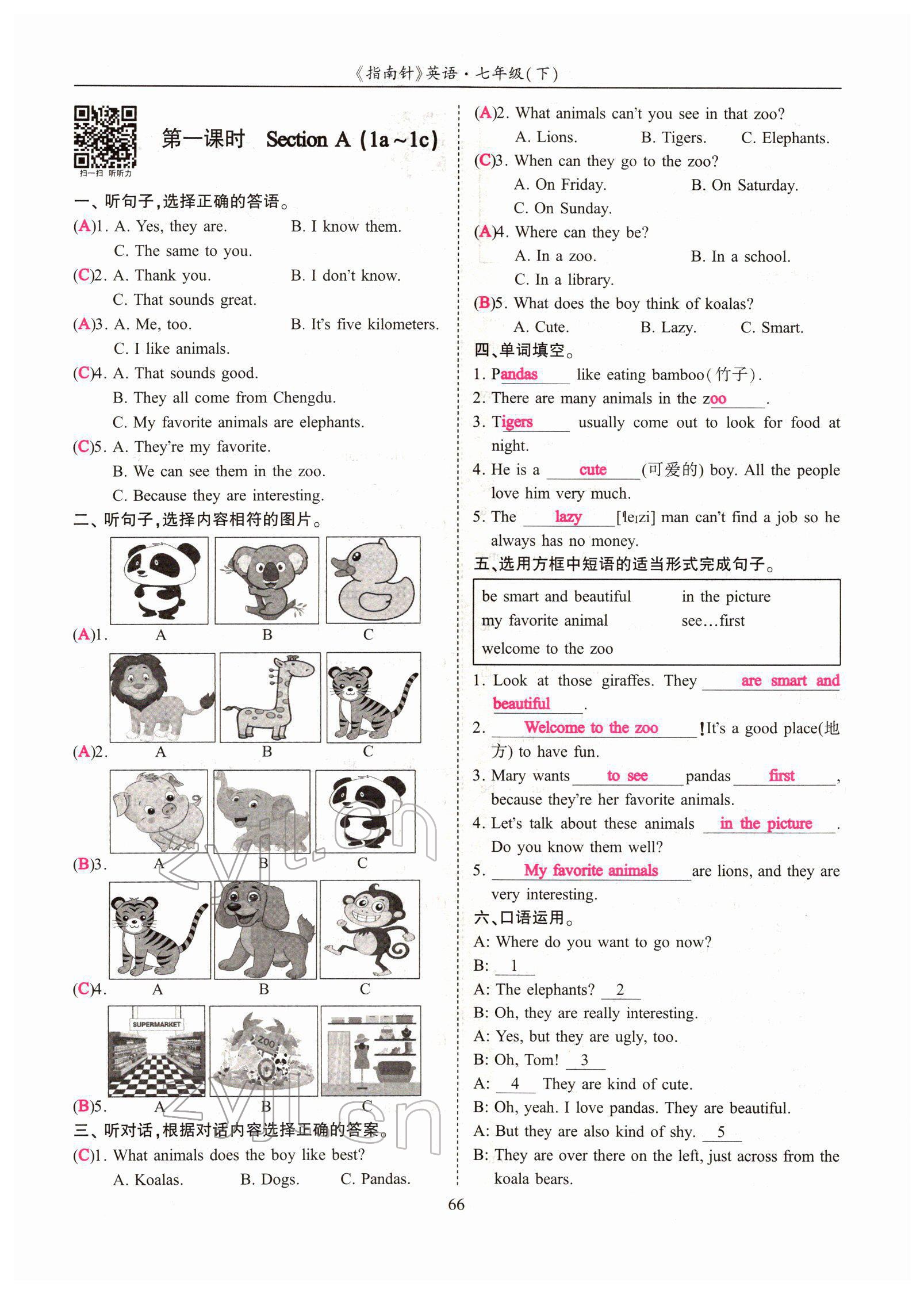 注:目前有些书本章节名称可能整理的还不是很完善,但都是按照顺序排列的,请同学们按照顺序仔细查找。练习册 2022年指南针高分必备七年级英语下册人教版四川专版 答案主要是用来给同学们做完题方便对答案用的,请勿直接抄袭。