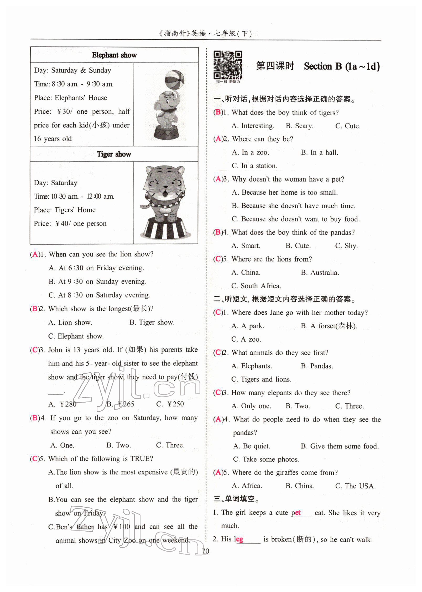 注:目前有些书本章节名称可能整理的还不是很完善,但都是按照顺序排列的,请同学们按照顺序仔细查找。练习册 2022年指南针高分必备七年级英语下册人教版四川专版 答案主要是用来给同学们做完题方便对答案用的,请勿直接抄袭。