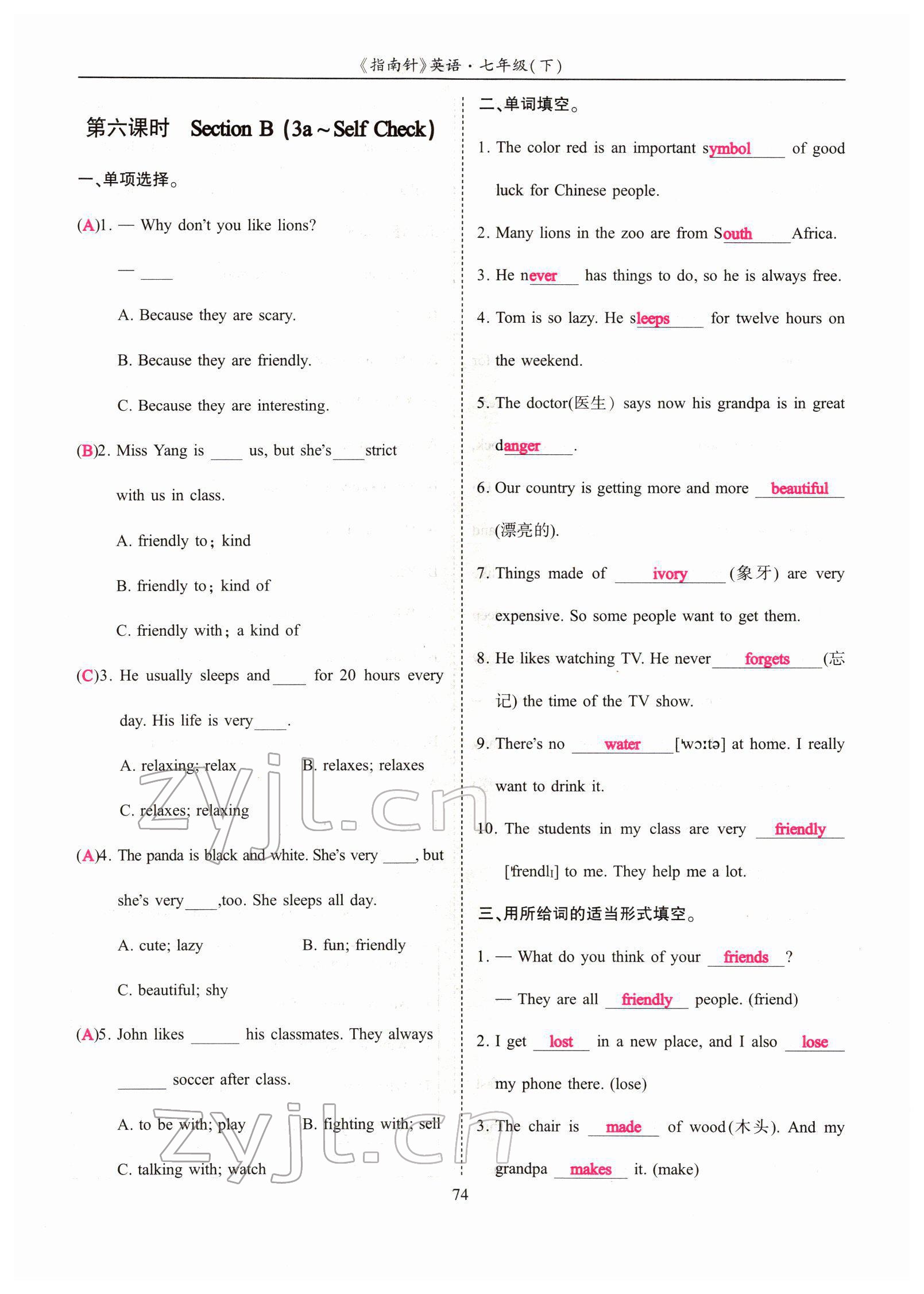 - 参考答案第74页