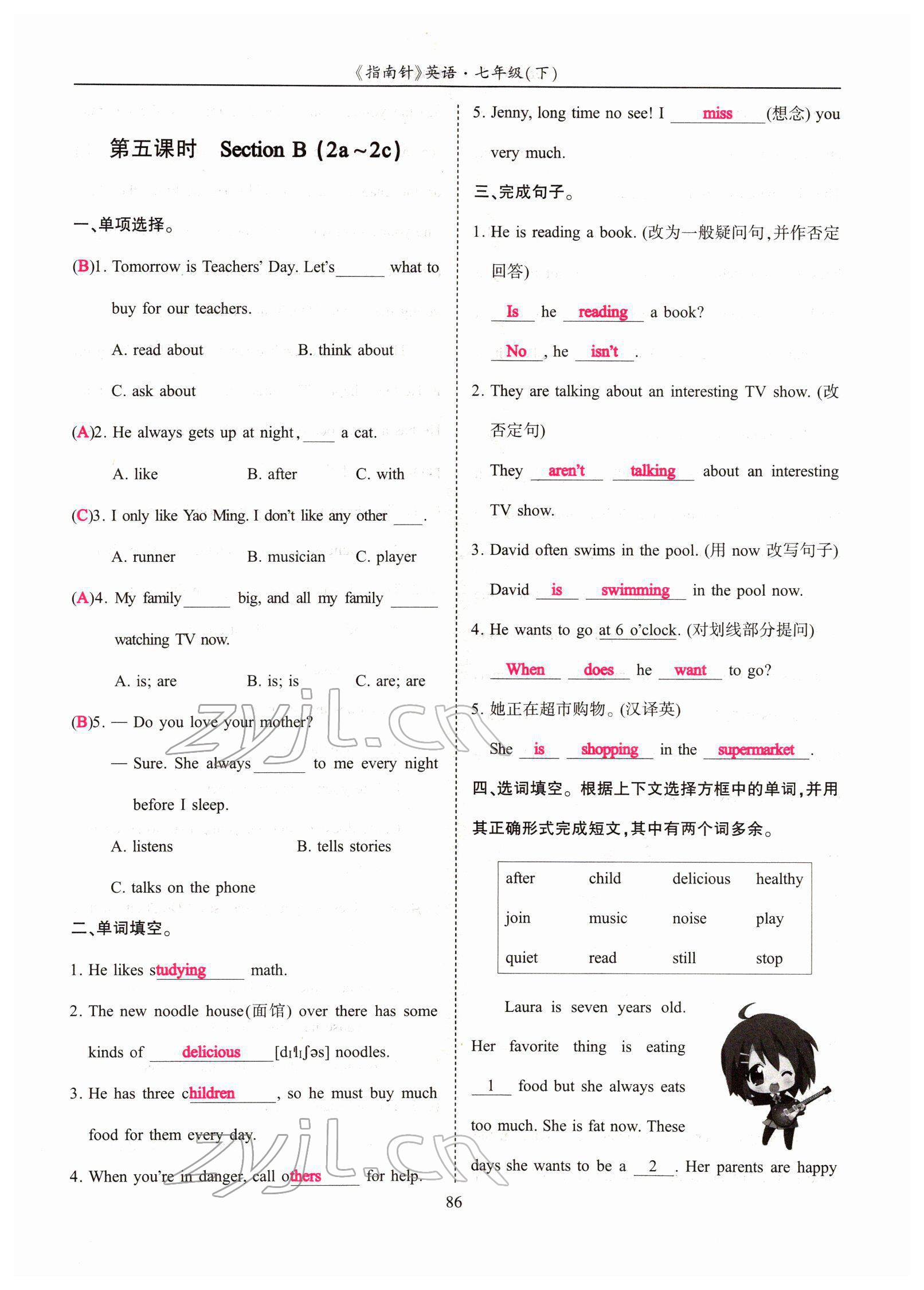 注:目前有些书本章节名称可能整理的还不是很完善,但都是按照顺序排列的,请同学们按照顺序仔细查找。练习册 2022年指南针高分必备七年级英语下册人教版四川专版 答案主要是用来给同学们做完题方便对答案用的,请勿直接抄袭。