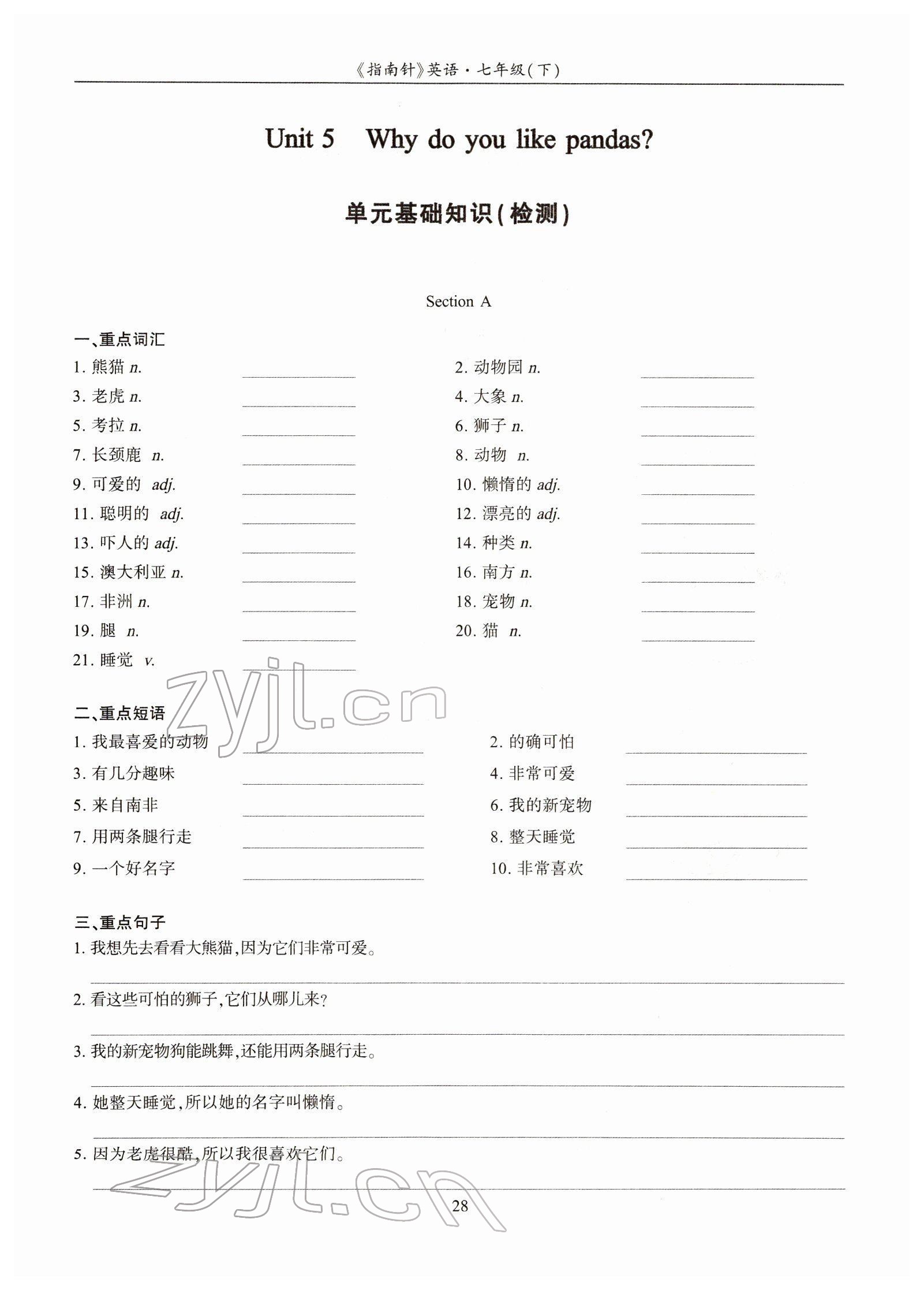 注:目前有些书本章节名称可能整理的还不是很完善,但都是按照顺序排列的,请同学们按照顺序仔细查找。练习册 2022年指南针高分必备七年级英语下册人教版四川专版 答案主要是用来给同学们做完题方便对答案用的,请勿直接抄袭。