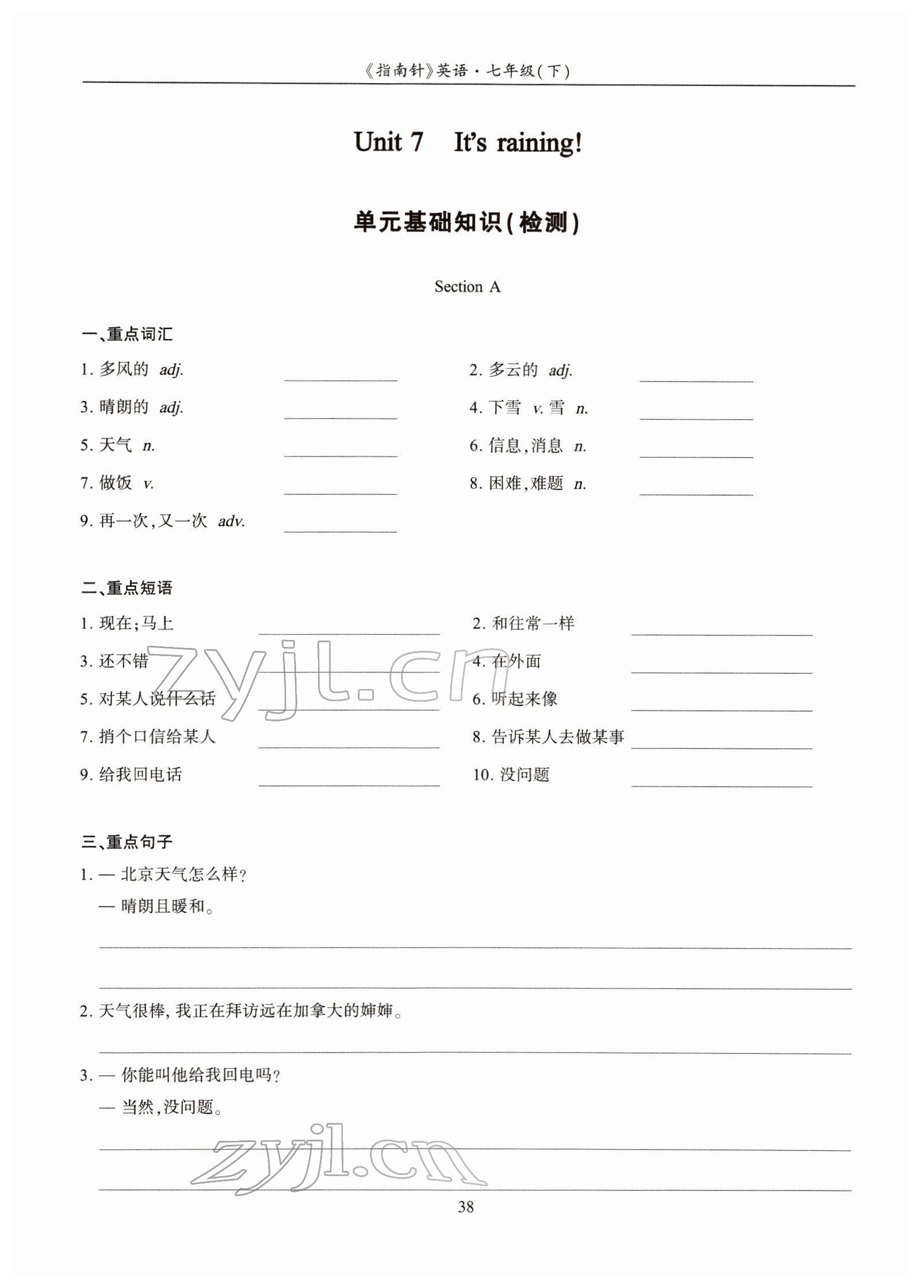 注:目前有些书本章节名称可能整理的还不是很完善,但都是按照顺序排列的,请同学们按照顺序仔细查找。练习册 2022年指南针高分必备七年级英语下册人教版四川专版 答案主要是用来给同学们做完题方便对答案用的,请勿直接抄袭。