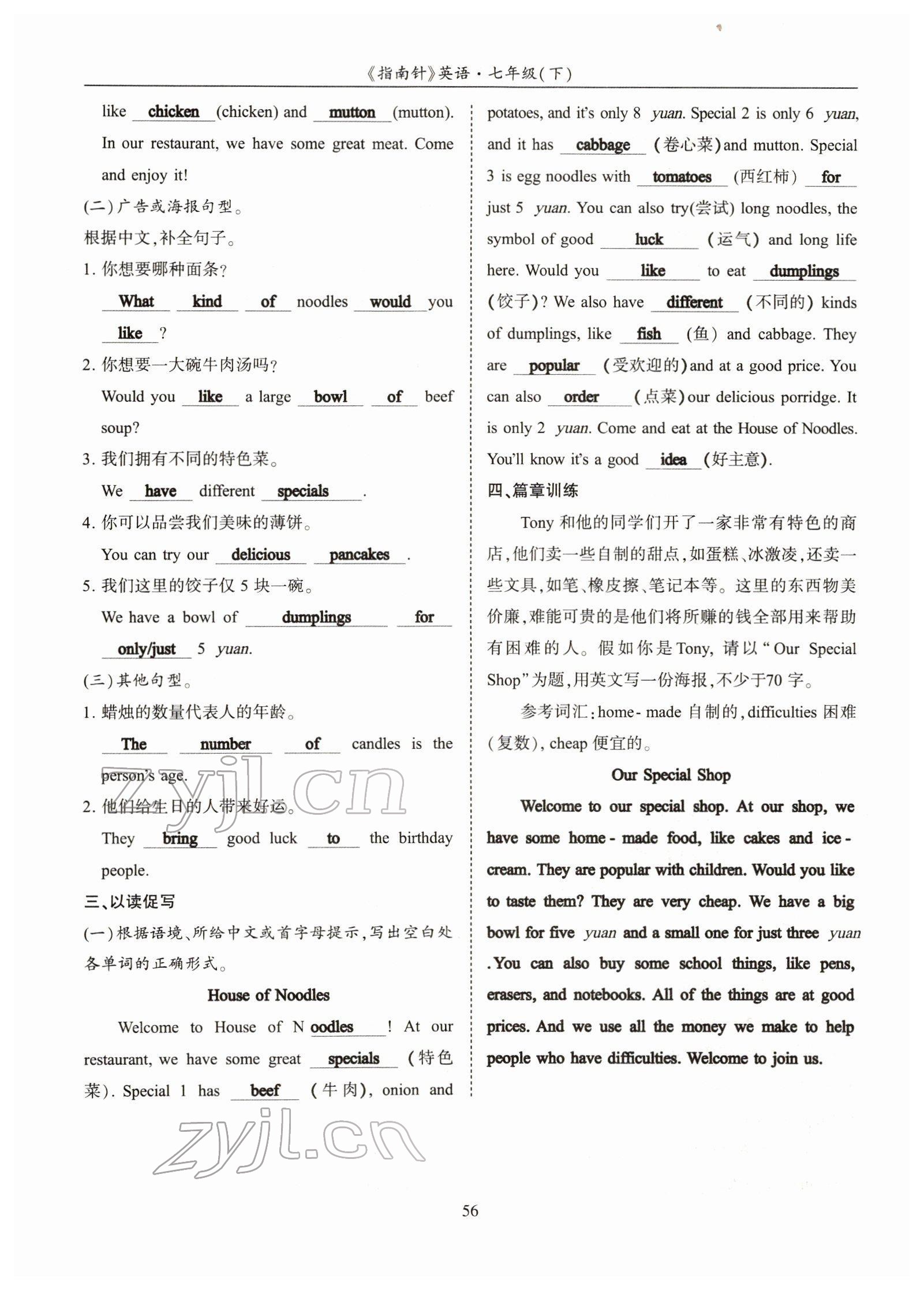 注:目前有些书本章节名称可能整理的还不是很完善,但都是按照顺序排列的,请同学们按照顺序仔细查找。练习册 2022年指南针高分必备七年级英语下册人教版四川专版 答案主要是用来给同学们做完题方便对答案用的,请勿直接抄袭。