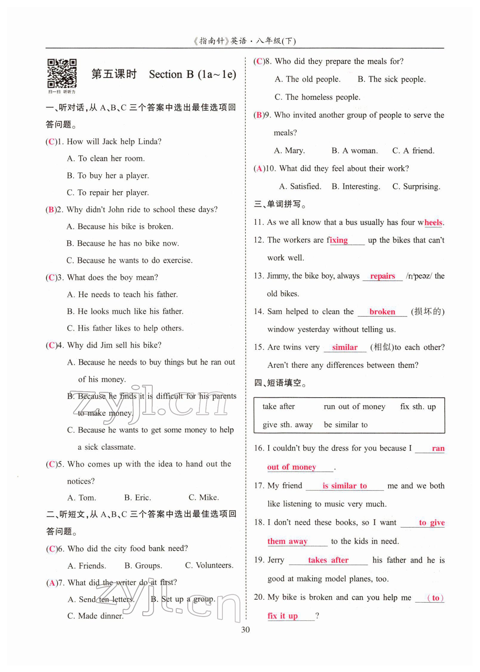 注:目前有些书本章节名称可能整理的还不是很完善,但都是按照顺序排列的,请同学们按照顺序仔细查找。练习册 2022年指南针高分必备八年级英语下册人教版四川专版 答案主要是用来给同学们做完题方便对答案用的,请勿直接抄袭。