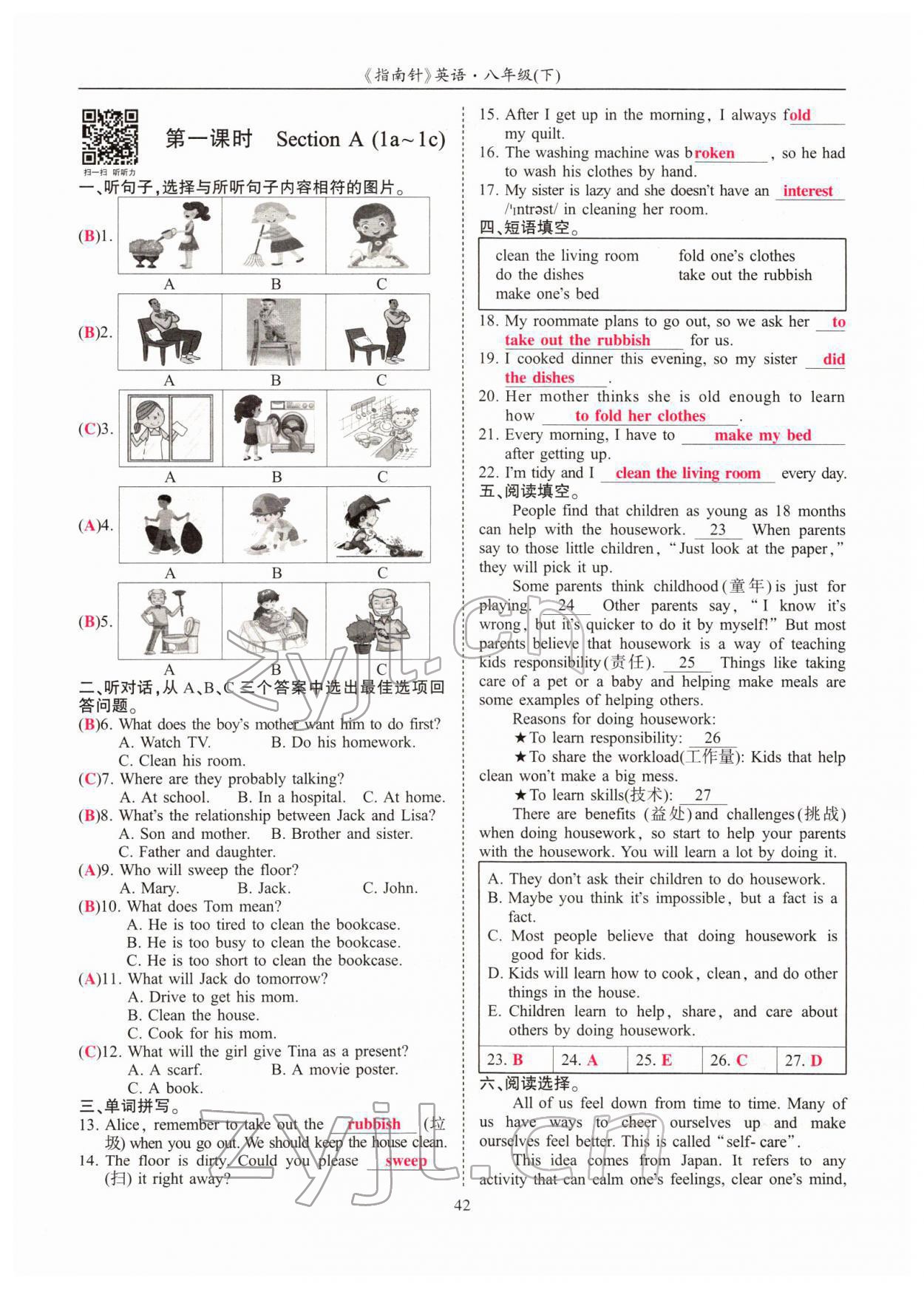 注:目前有些书本章节名称可能整理的还不是很完善,但都是按照顺序排列的,请同学们按照顺序仔细查找。练习册 2022年指南针高分必备八年级英语下册人教版四川专版 答案主要是用来给同学们做完题方便对答案用的,请勿直接抄袭。