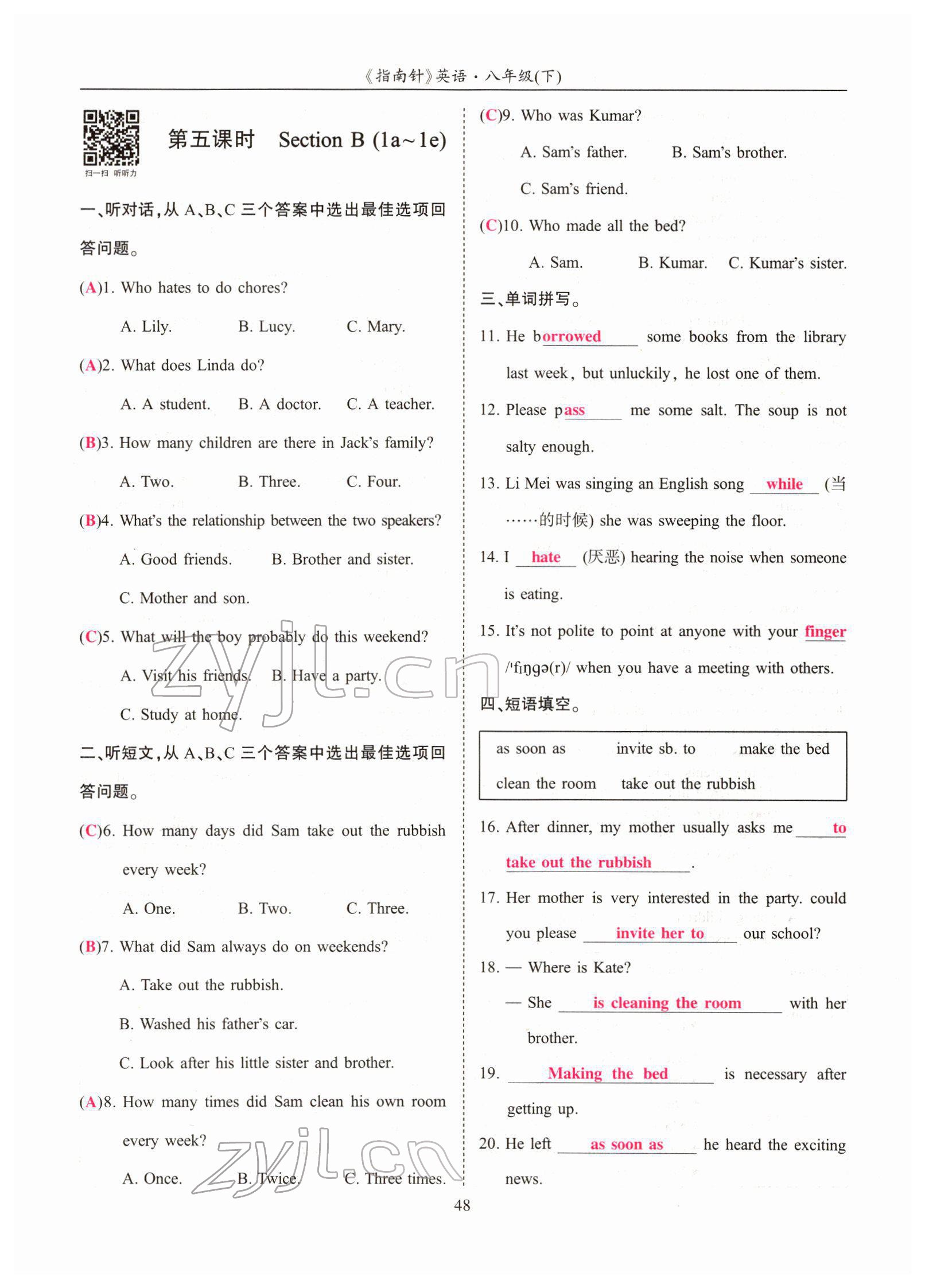 注:目前有些书本章节名称可能整理的还不是很完善,但都是按照顺序排列的,请同学们按照顺序仔细查找。练习册 2022年指南针高分必备八年级英语下册人教版四川专版 答案主要是用来给同学们做完题方便对答案用的,请勿直接抄袭。