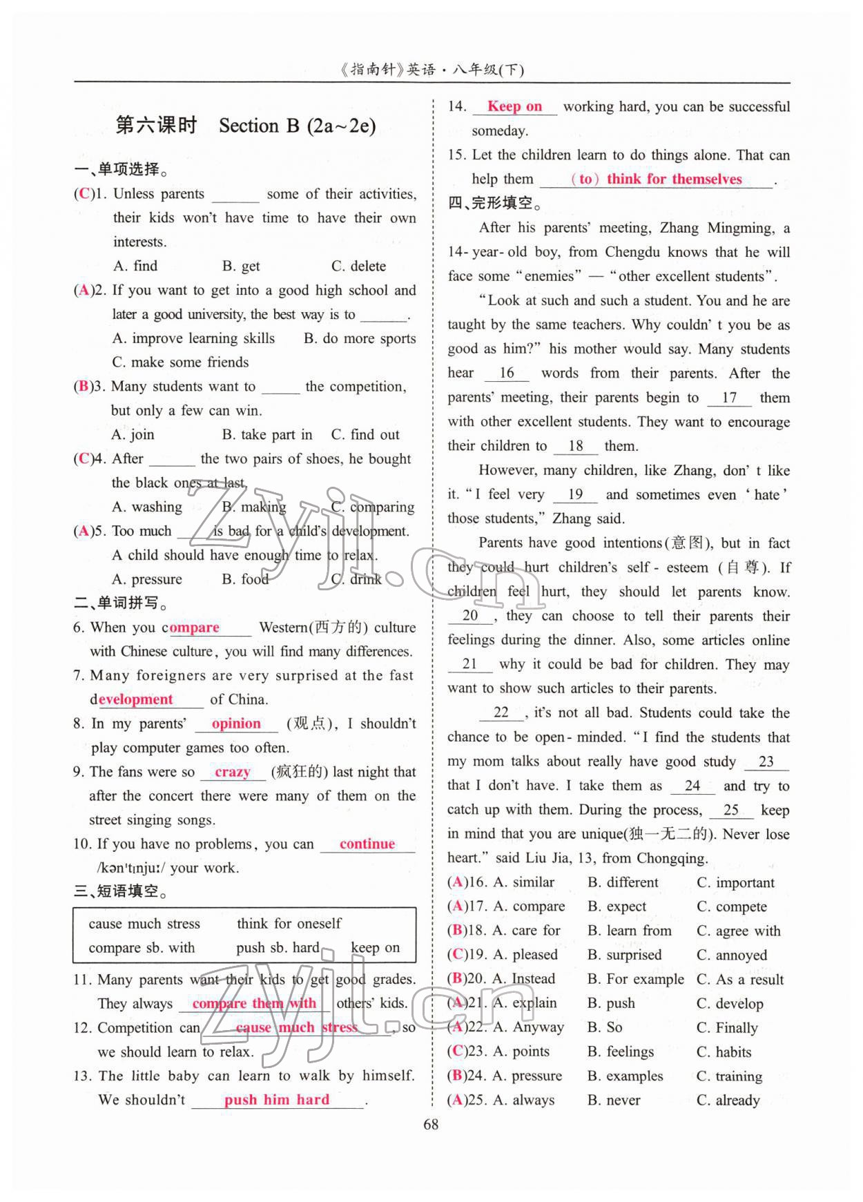 注:目前有些书本章节名称可能整理的还不是很完善,但都是按照顺序排列的,请同学们按照顺序仔细查找。练习册 2022年指南针高分必备八年级英语下册人教版四川专版 答案主要是用来给同学们做完题方便对答案用的,请勿直接抄袭。