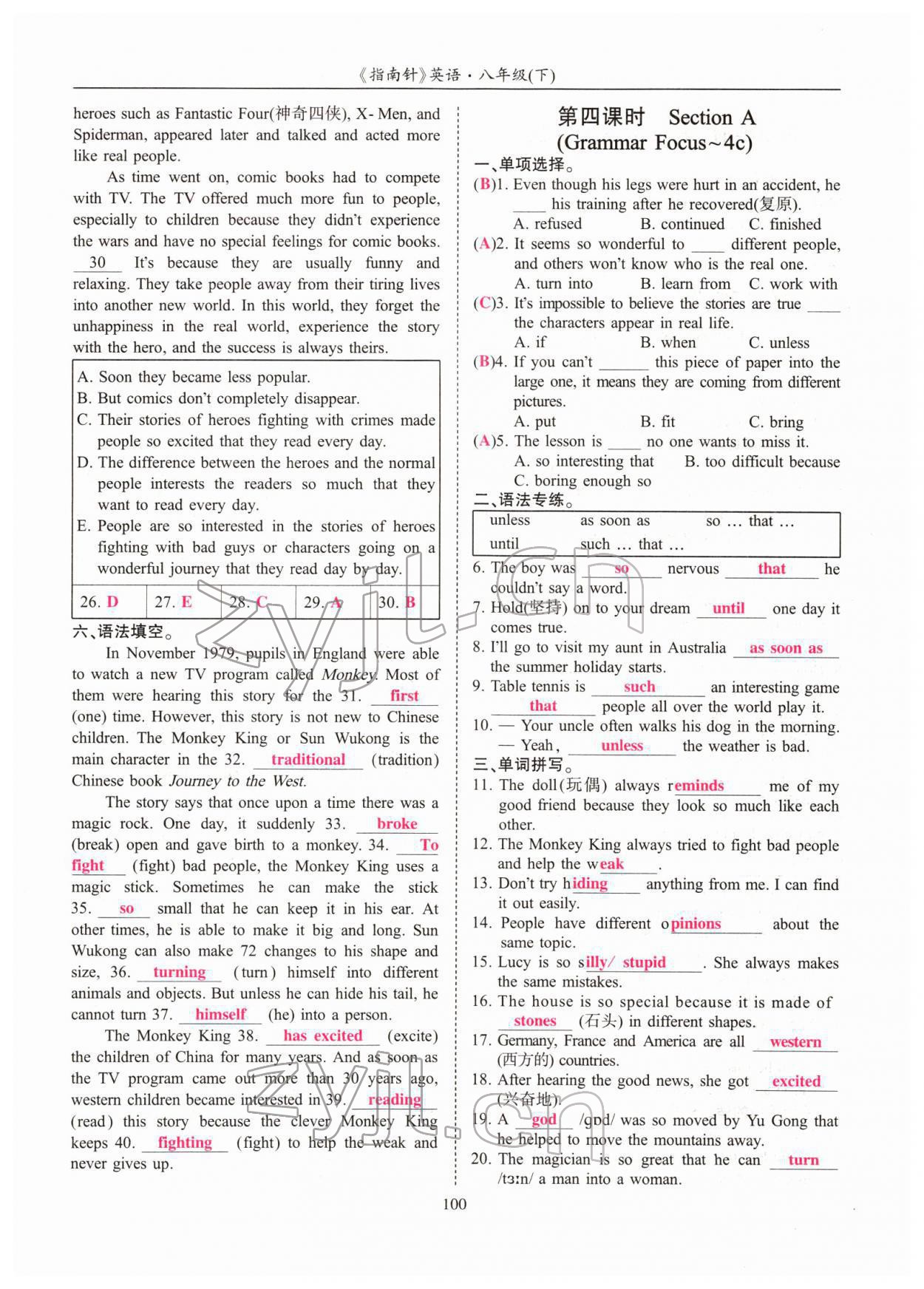 注:目前有些书本章节名称可能整理的还不是很完善,但都是按照顺序排列的,请同学们按照顺序仔细查找。练习册 2022年指南针高分必备八年级英语下册人教版四川专版 答案主要是用来给同学们做完题方便对答案用的,请勿直接抄袭。