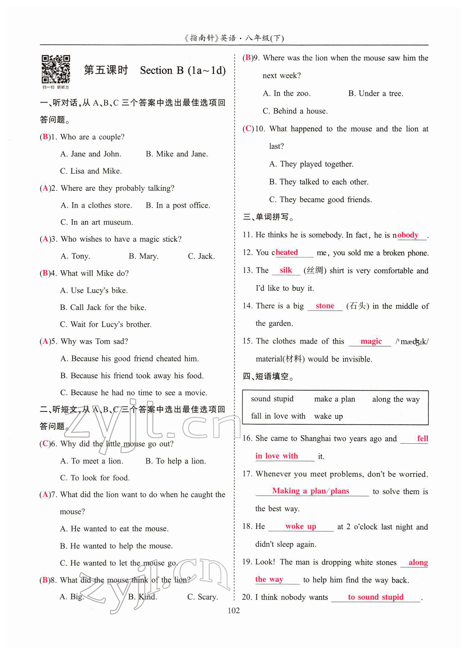 注:目前有些书本章节名称可能整理的还不是很完善,但都是按照顺序排列的,请同学们按照顺序仔细查找。练习册 2022年指南针高分必备八年级英语下册人教版四川专版 答案主要是用来给同学们做完题方便对答案用的,请勿直接抄袭。