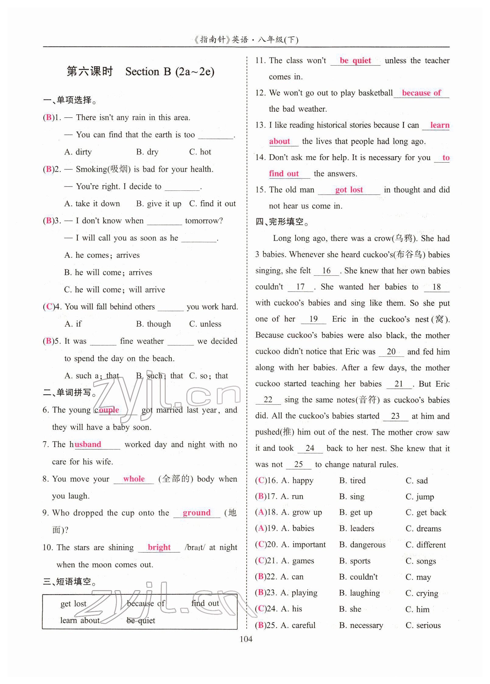 注:目前有些书本章节名称可能整理的还不是很完善,但都是按照顺序排列的,请同学们按照顺序仔细查找。练习册 2022年指南针高分必备八年级英语下册人教版四川专版 答案主要是用来给同学们做完题方便对答案用的,请勿直接抄袭。