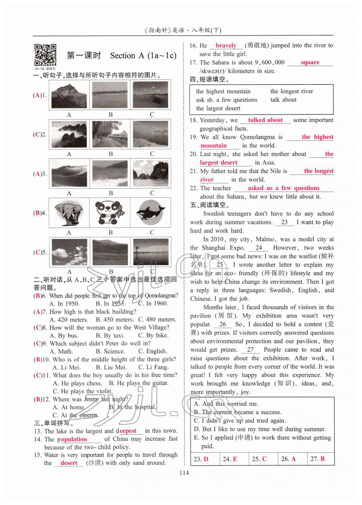 注:目前有些书本章节名称可能整理的还不是很完善,但都是按照顺序排列的,请同学们按照顺序仔细查找。练习册 2022年指南针高分必备八年级英语下册人教版四川专版 答案主要是用来给同学们做完题方便对答案用的,请勿直接抄袭。
