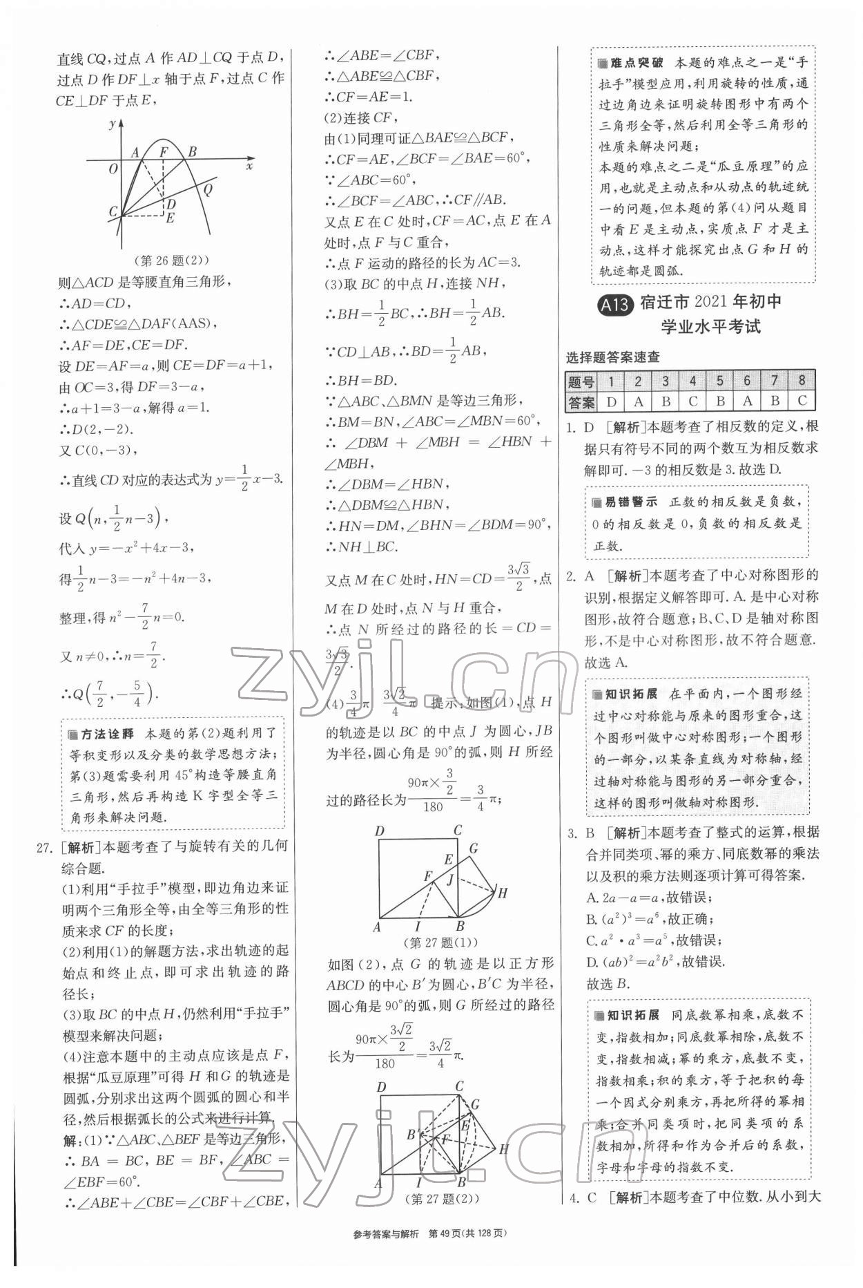 注:目前有些书本章节名称可能整理的还不是很完善,但都是按照顺序排列的,请同学们按照顺序仔细查找。练习册 2022年春雨教育考必胜江苏13大市中考试卷精选数学 答案主要是用来给同学们做完题方便对答案用的,请勿直接抄袭。