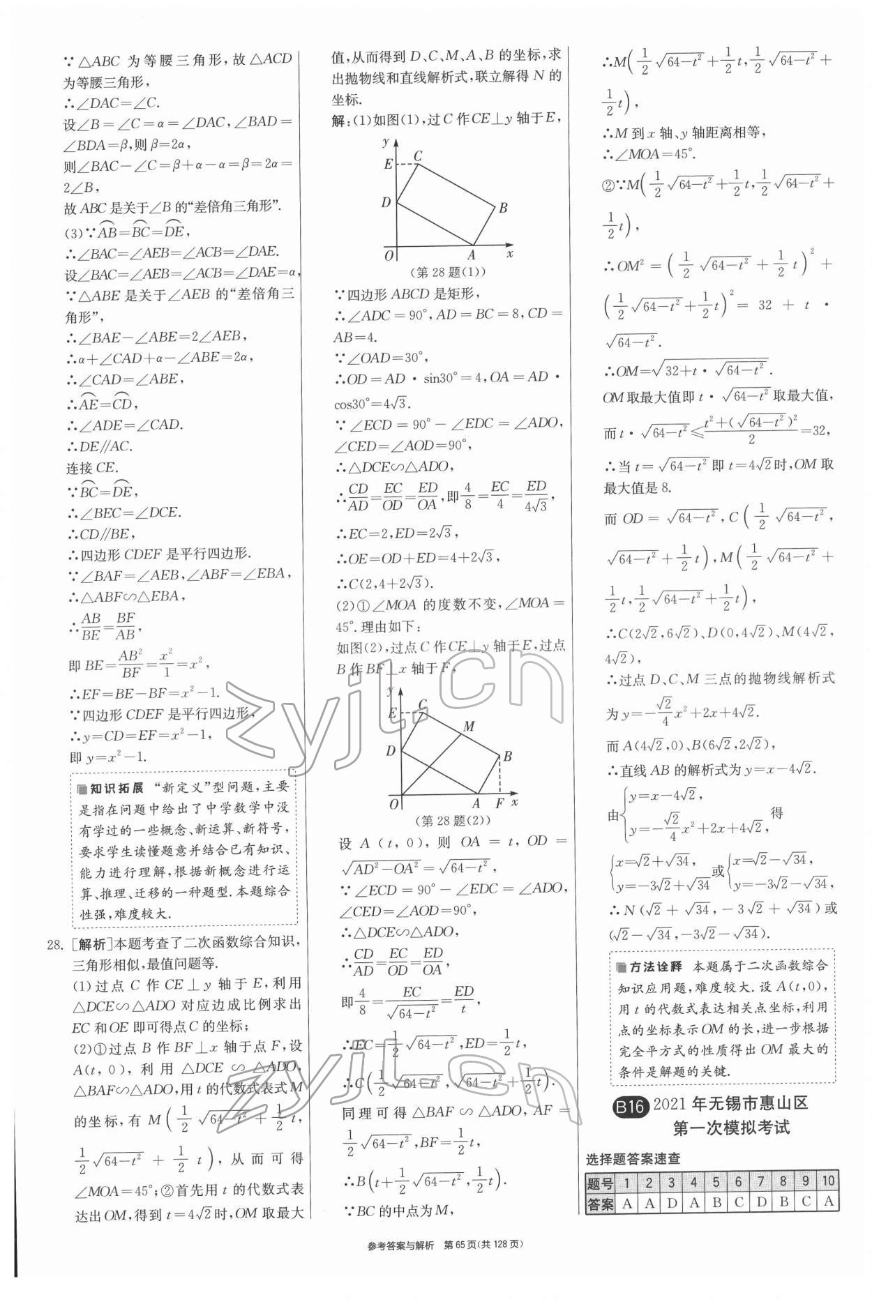 2022年春雨教育考必胜江苏13大市中考试卷精选数学