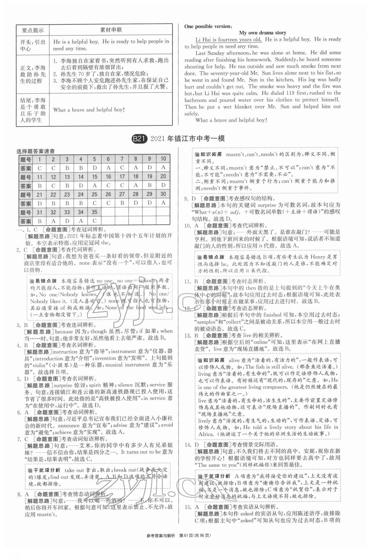 注:目前有些书本章节名称可能整理的还不是很完善,但都是按照顺序排列的,请同学们按照顺序仔细查找。练习册 2022年春雨教育考必胜江苏13大市中考试卷精选英语 答案主要是用来给同学们做完题方便对答案用的,请勿直接抄袭。