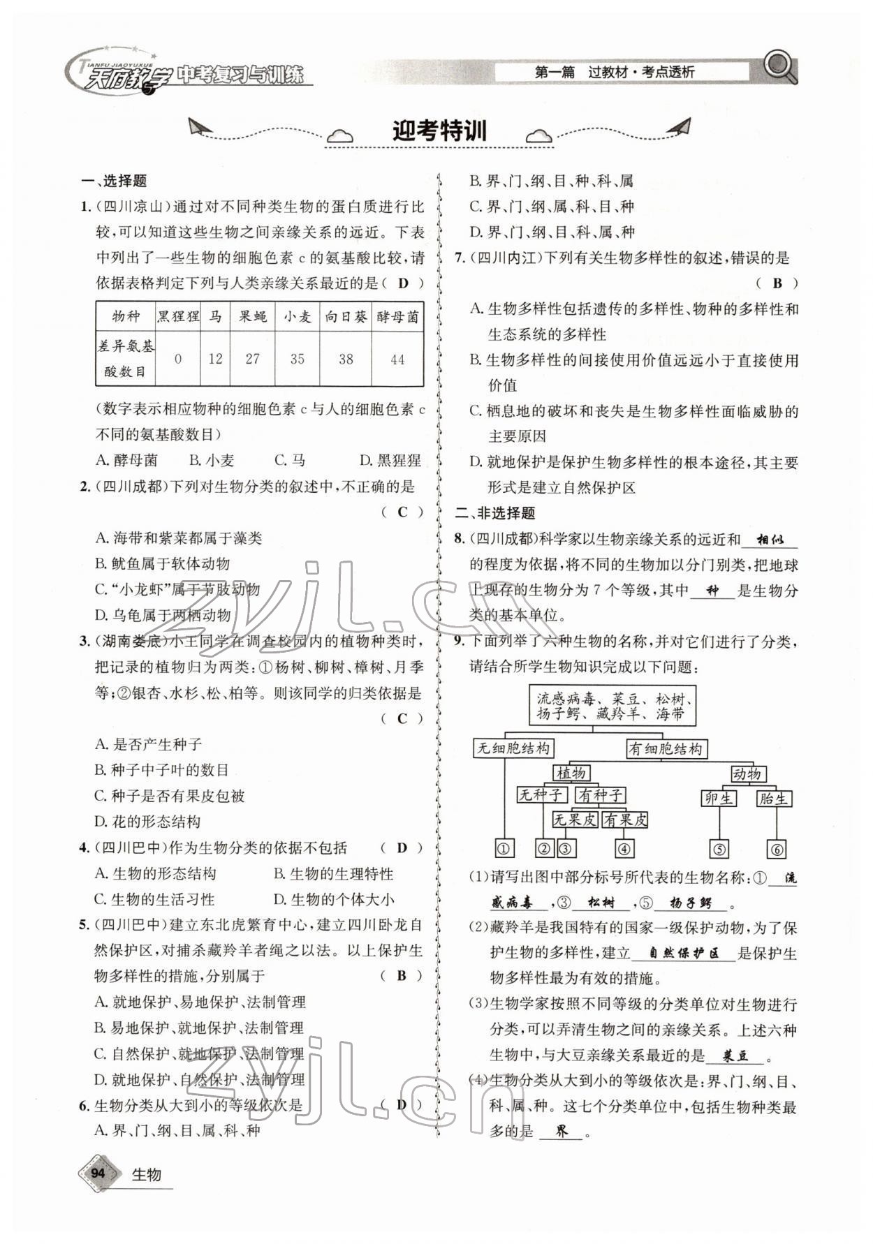 注:目前有些书本章节名称可能整理的还不是很完善,但都是按照顺序排列的,请同学们按照顺序仔细查找。练习册 2022年天府教与学中考复习与训练生物四川专版 答案主要是用来给同学们做完题方便对答案用的,请勿直接抄袭。