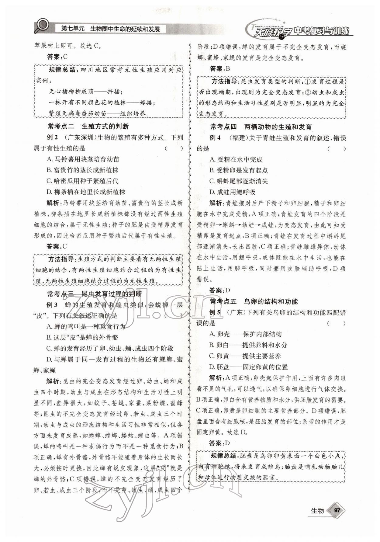 2022年天府教与学中考复习与训练生物四川专版