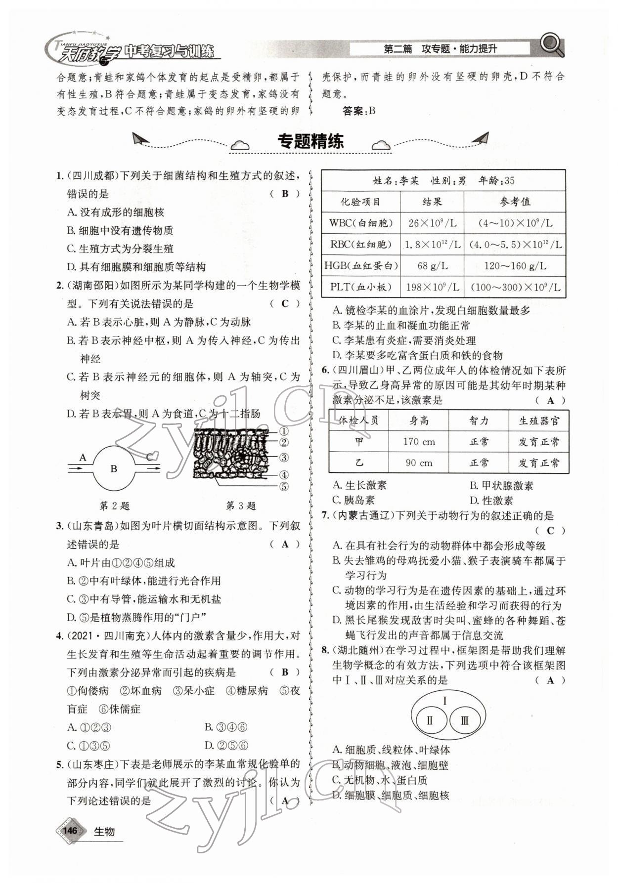 注:目前有些书本章节名称可能整理的还不是很完善,但都是按照顺序排列的,请同学们按照顺序仔细查找。练习册 2022年天府教与学中考复习与训练生物四川专版 答案主要是用来给同学们做完题方便对答案用的,请勿直接抄袭。