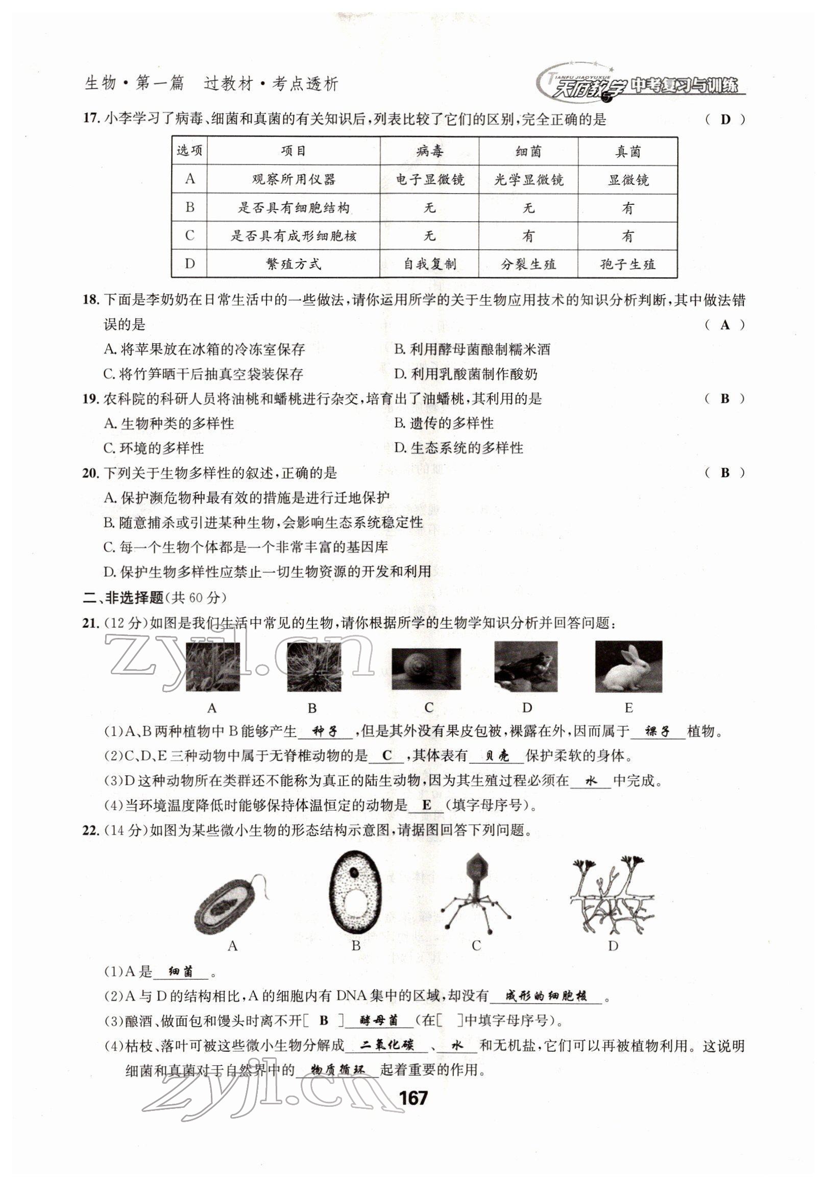 注:目前有些书本章节名称可能整理的还不是很完善,但都是按照顺序排列的,请同学们按照顺序仔细查找。练习册 2022年天府教与学中考复习与训练生物四川专版 答案主要是用来给同学们做完题方便对答案用的,请勿直接抄袭。