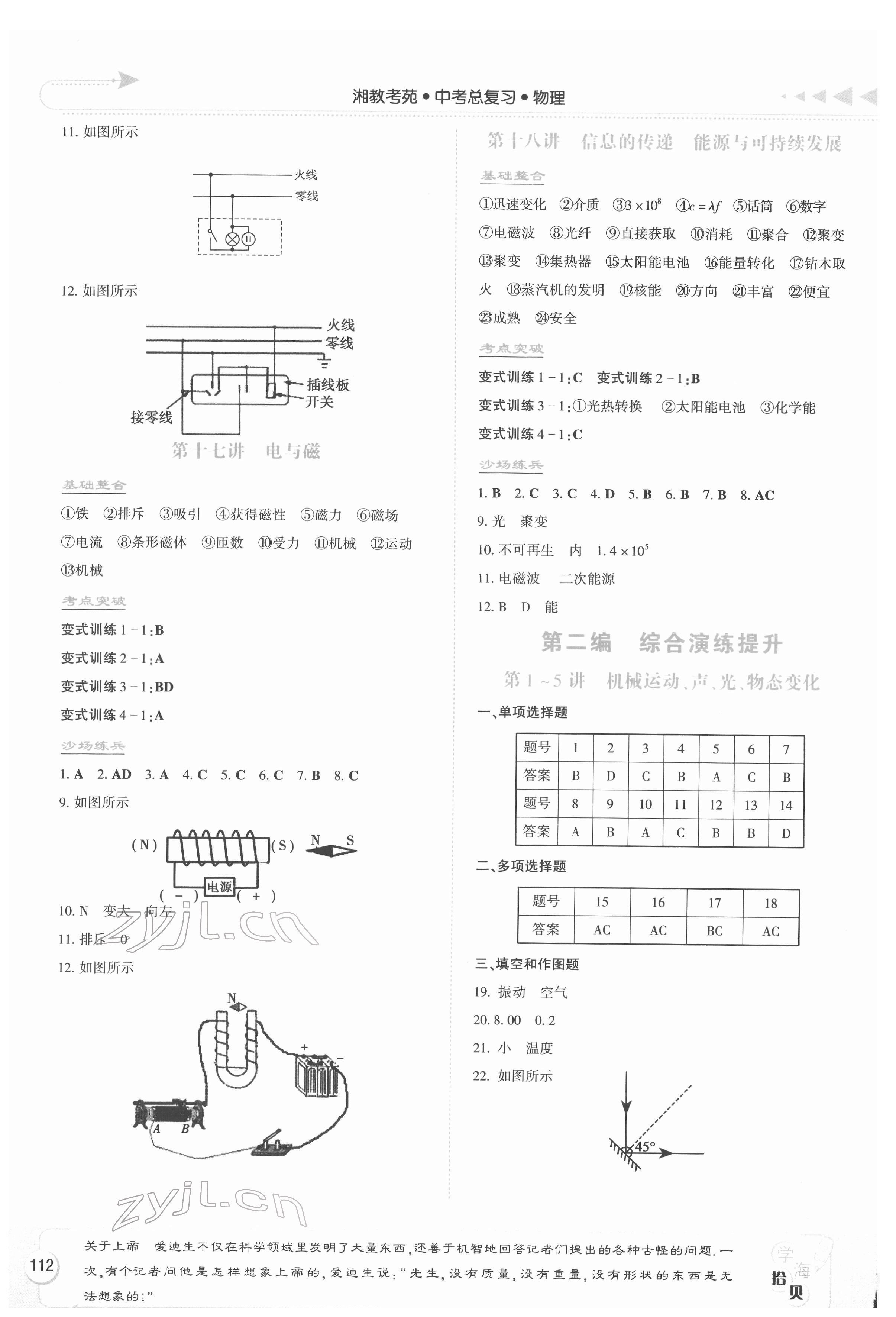 注:目前有些书本章节名称可能整理的还不是很完善,但都是按照顺序排列的,请同学们按照顺序仔细查找。练习册 2022年湘教考苑中考总复习物理衡阳版 答案主要是用来给同学们做完题方便对答案用的,请勿直接抄袭。