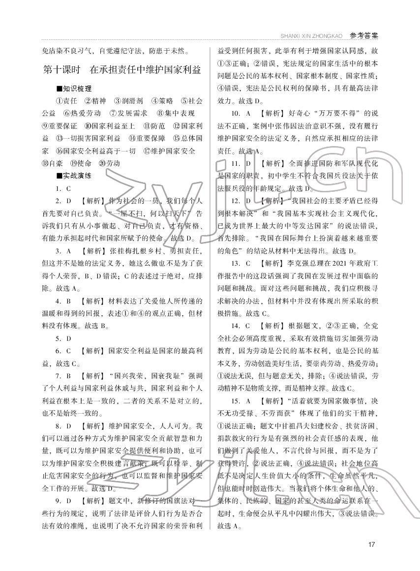 注:目前有些书本章节名称可能整理的还不是很完善,但都是按照顺序排列的,请同学们按照顺序仔细查找。练习册 2022年山西新中考道德与法治 答案主要是用来给同学们做完题方便对答案用的,请勿直接抄袭。