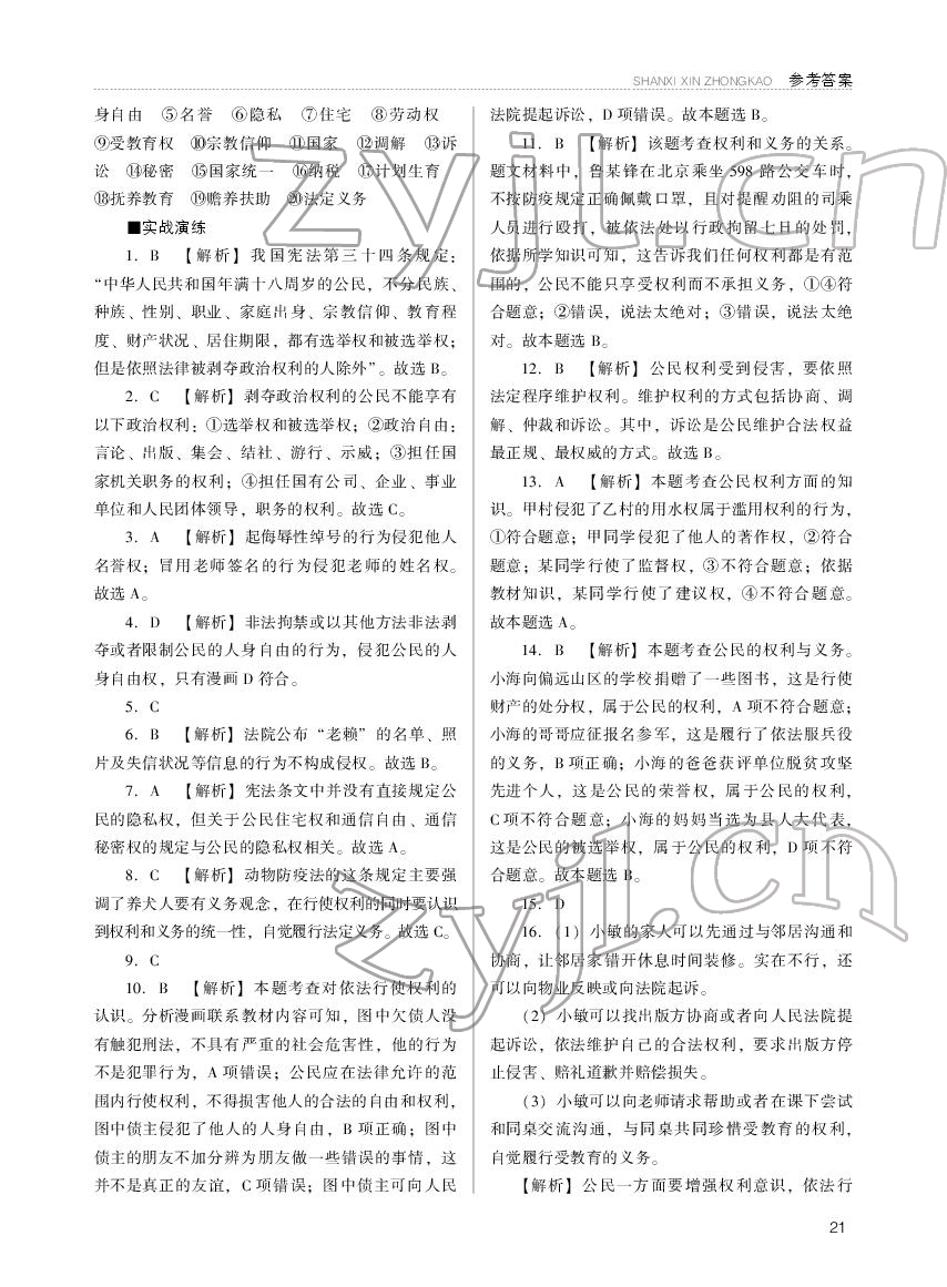 注:目前有些书本章节名称可能整理的还不是很完善,但都是按照顺序排列的,请同学们按照顺序仔细查找。练习册 2022年山西新中考道德与法治 答案主要是用来给同学们做完题方便对答案用的,请勿直接抄袭。