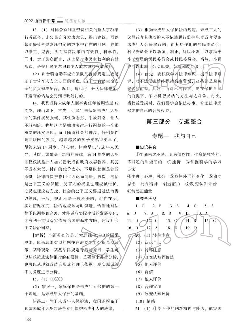 注:目前有些书本章节名称可能整理的还不是很完善,但都是按照顺序排列的,请同学们按照顺序仔细查找。练习册 2022年山西新中考道德与法治 答案主要是用来给同学们做完题方便对答案用的,请勿直接抄袭。