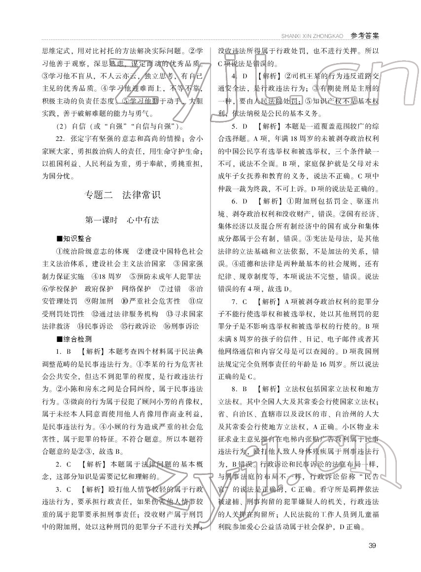 注:目前有些书本章节名称可能整理的还不是很完善,但都是按照顺序排列的,请同学们按照顺序仔细查找。练习册 2022年山西新中考道德与法治 答案主要是用来给同学们做完题方便对答案用的,请勿直接抄袭。