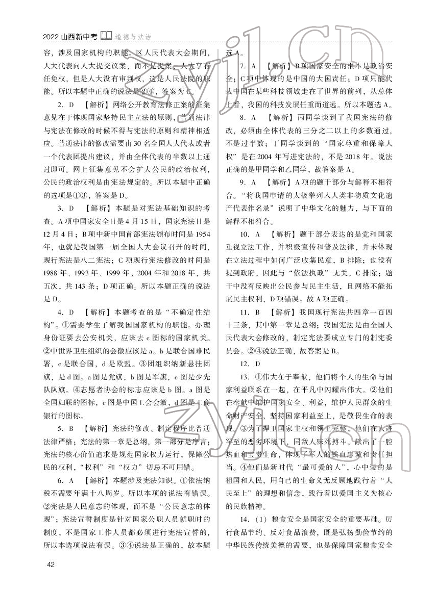 注:目前有些书本章节名称可能整理的还不是很完善,但都是按照顺序排列的,请同学们按照顺序仔细查找。练习册 2022年山西新中考道德与法治 答案主要是用来给同学们做完题方便对答案用的,请勿直接抄袭。