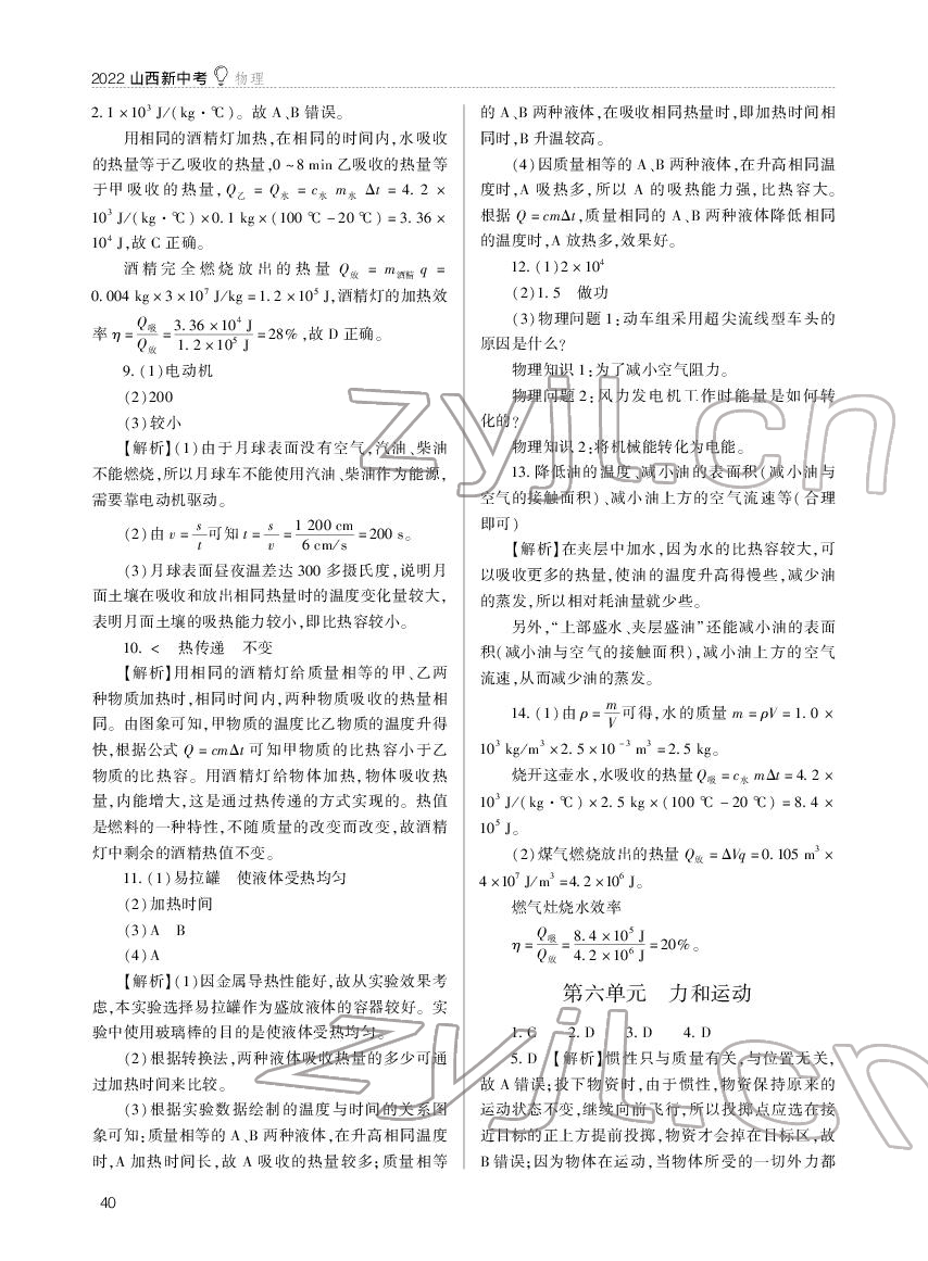 注:目前有些书本章节名称可能整理的还不是很完善,但都是按照顺序排列的,请同学们按照顺序仔细查找。练习册 2022年山西新中考物理 答案主要是用来给同学们做完题方便对答案用的,请勿直接抄袭。