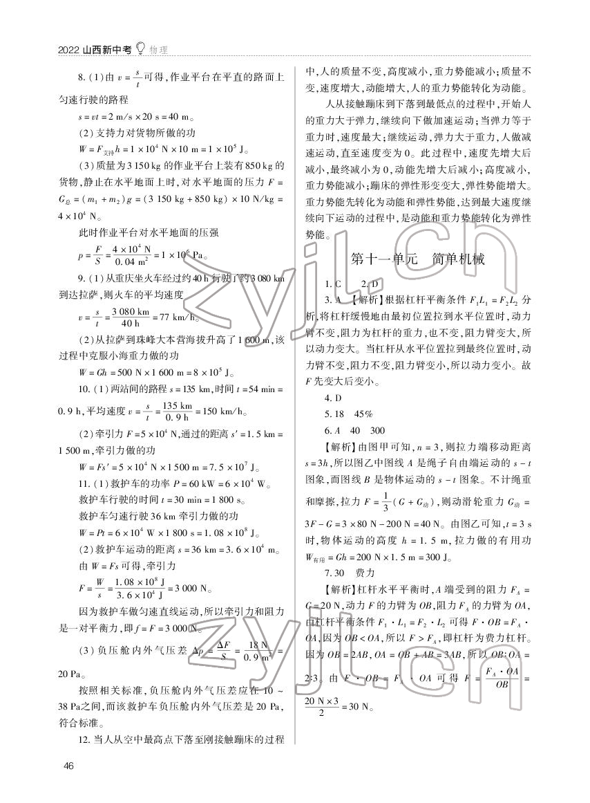 注:目前有些书本章节名称可能整理的还不是很完善,但都是按照顺序排列的,请同学们按照顺序仔细查找。练习册 2022年山西新中考物理 答案主要是用来给同学们做完题方便对答案用的,请勿直接抄袭。