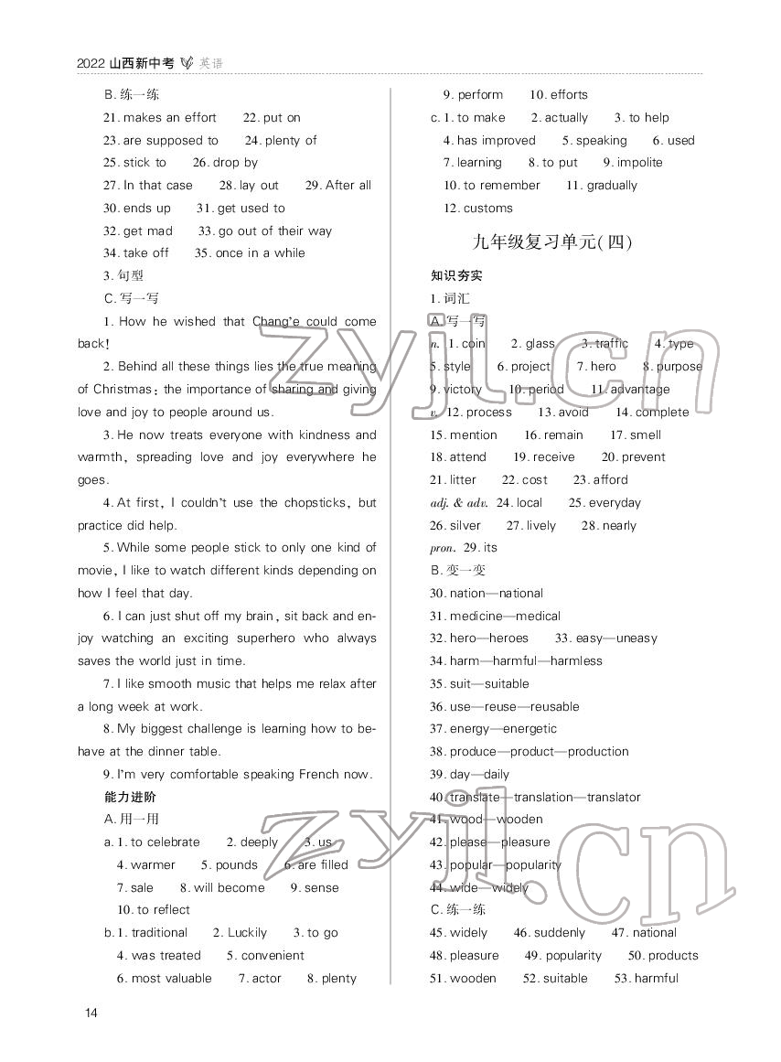 注:目前有些书本章节名称可能整理的还不是很完善,但都是按照顺序排列的,请同学们按照顺序仔细查找。练习册 2022年山西新中考英语 答案主要是用来给同学们做完题方便对答案用的,请勿直接抄袭。