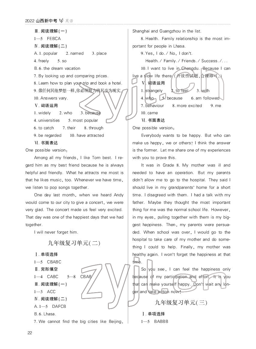 注:目前有些书本章节名称可能整理的还不是很完善,但都是按照顺序排列的,请同学们按照顺序仔细查找。练习册 2022年山西新中考英语 答案主要是用来给同学们做完题方便对答案用的,请勿直接抄袭。