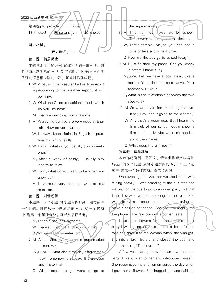 注:目前有些书本章节名称可能整理的还不是很完善,但都是按照顺序排列的,请同学们按照顺序仔细查找。练习册 2022年山西新中考英语 答案主要是用来给同学们做完题方便对答案用的,请勿直接抄袭。