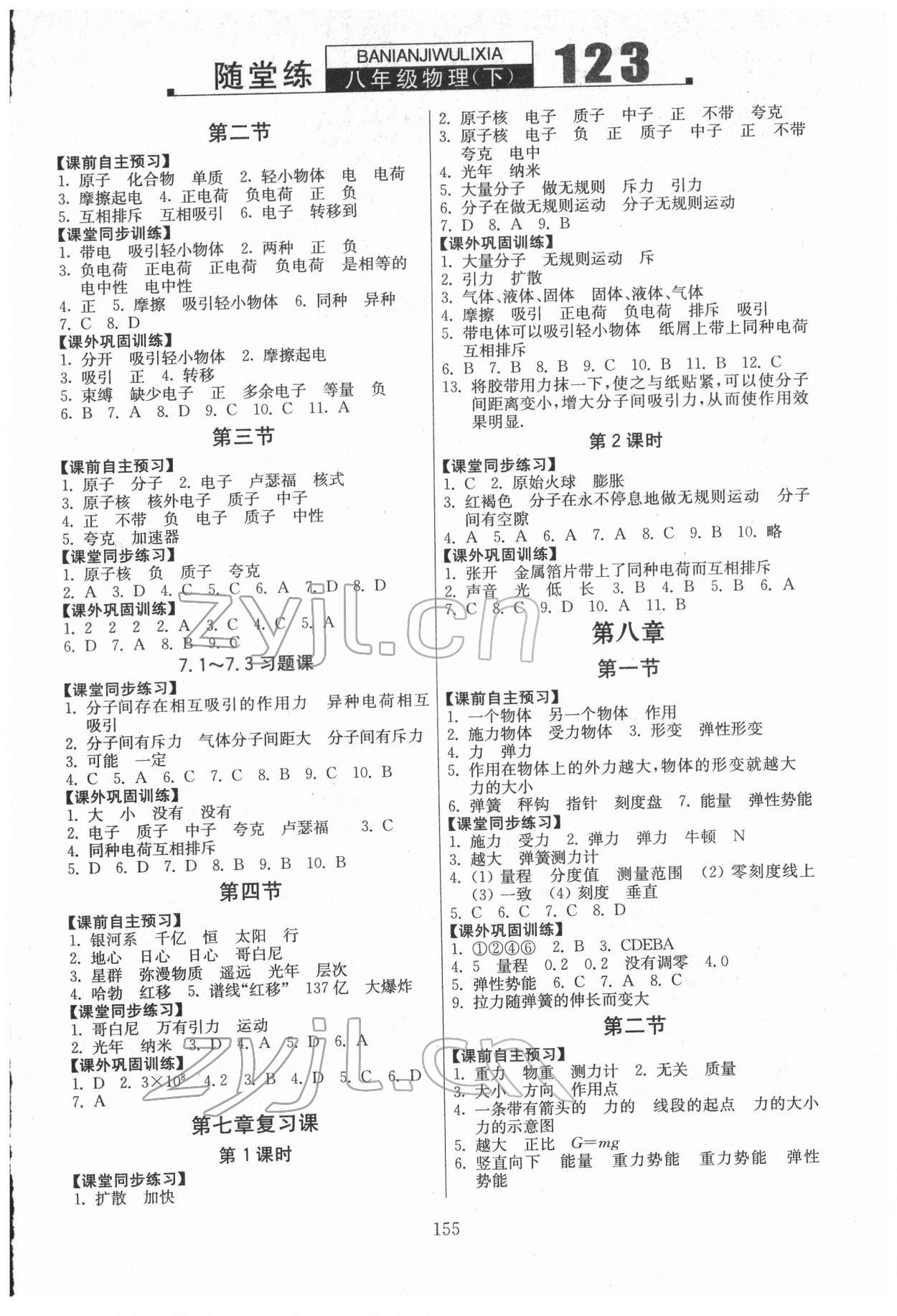 注:目前有些书本章节名称可能整理的还不是很完善,但都是按照顺序排列的,请同学们按照顺序仔细查找。练习册 2022年随堂练123八年级物理下册苏科版 答案主要是用来给同学们做完题方便对答案用的,请勿直接抄袭。