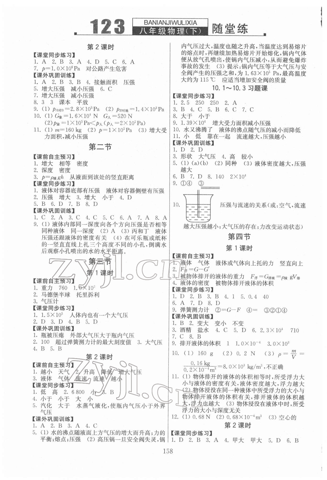 注:目前有些书本章节名称可能整理的还不是很完善,但都是按照顺序排列的,请同学们按照顺序仔细查找。练习册 2022年随堂练123八年级物理下册苏科版 答案主要是用来给同学们做完题方便对答案用的,请勿直接抄袭。