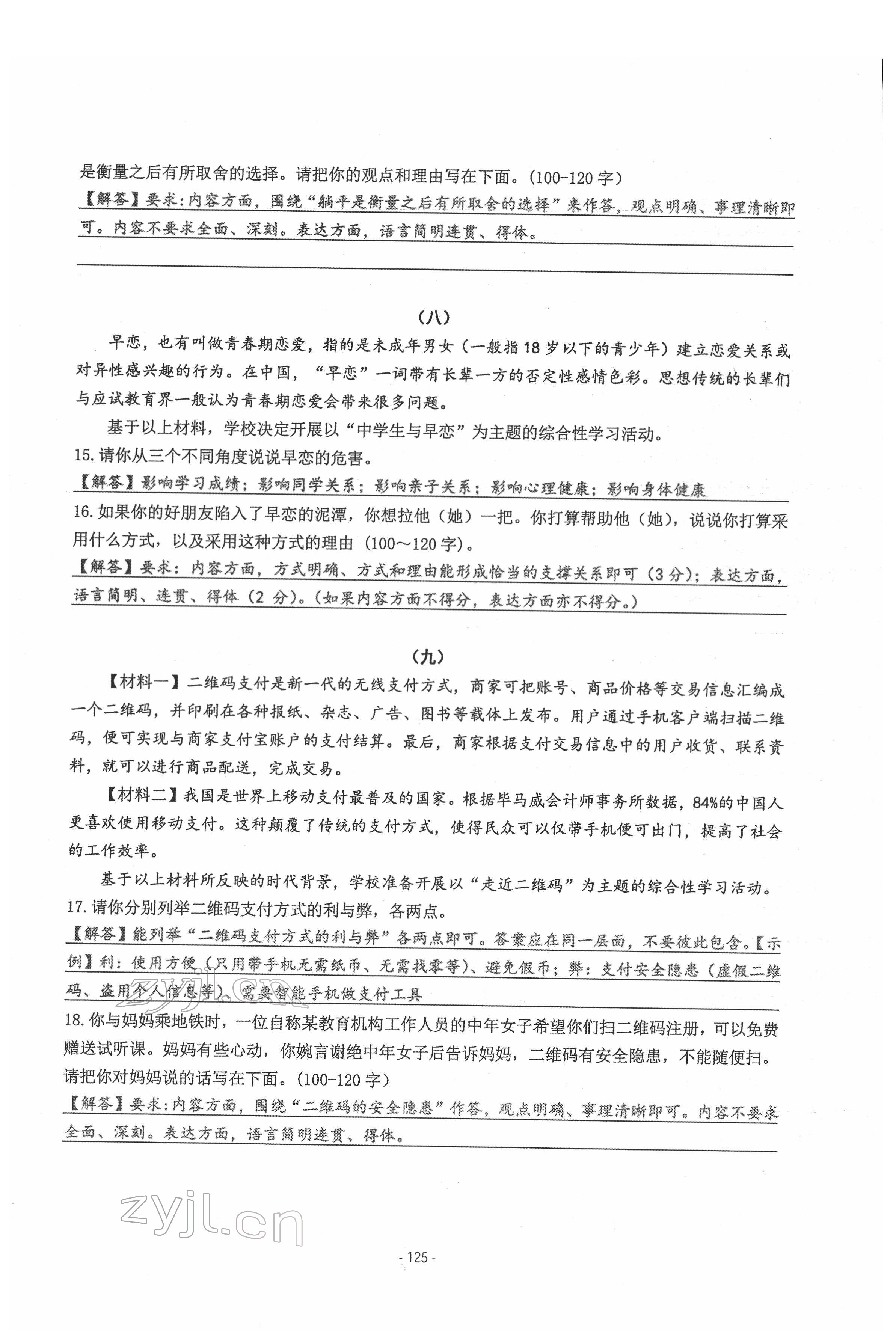 - 参考答案第125页