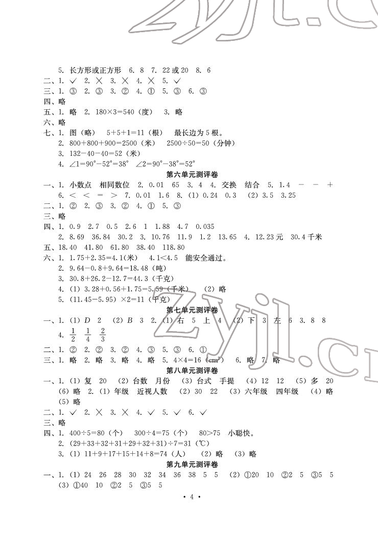 注:目前有些书本章节名称可能整理的还不是很完善,但都是按照顺序排列的,请同学们按照顺序仔细查找。练习册 2022年大显身手素质教育单元测评卷四年级数学下册人教版C版 答案主要是用来给同学们做完题方便对答案用的,请勿直接抄袭。