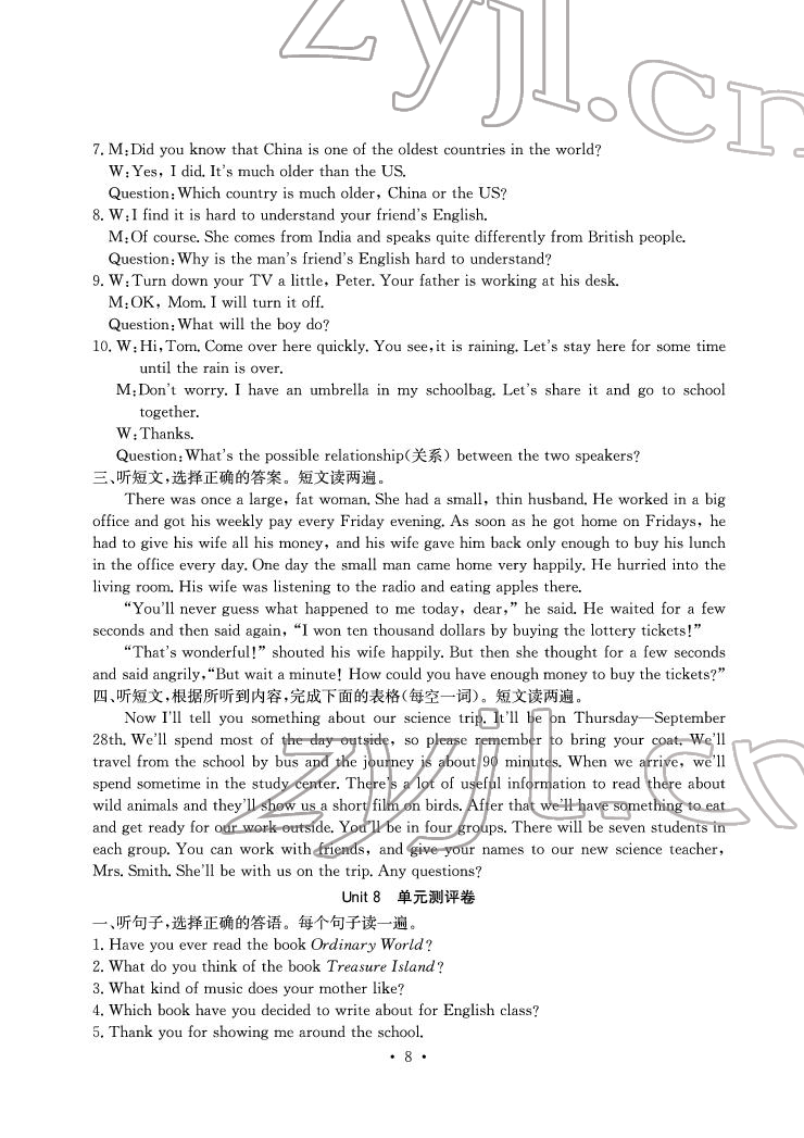 2022年大显身手素质教育单元测评卷八年级英语下册人教版