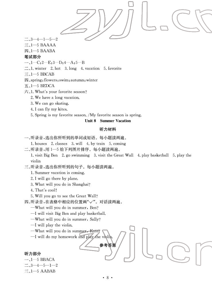 注:目前有些书本章节名称可能整理的还不是很完善,但都是按照顺序排列的,请同学们按照顺序仔细查找。练习册 2022年大显身手素质教育单元测评卷四年级英语下册闽教版B版 答案主要是用来给同学们做完题方便对答案用的,请勿直接抄袭。
