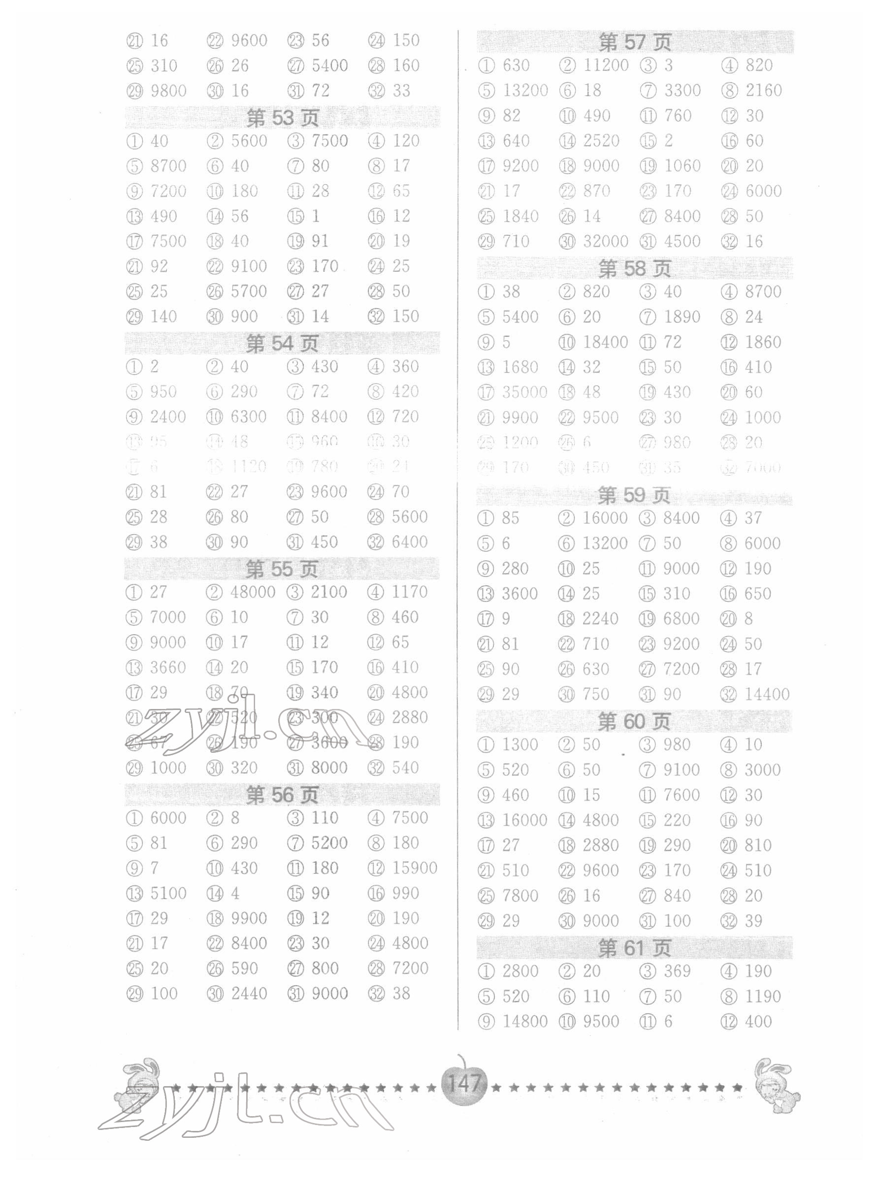 2022年口算题卡四年级数学下册苏教版南京大学出版社