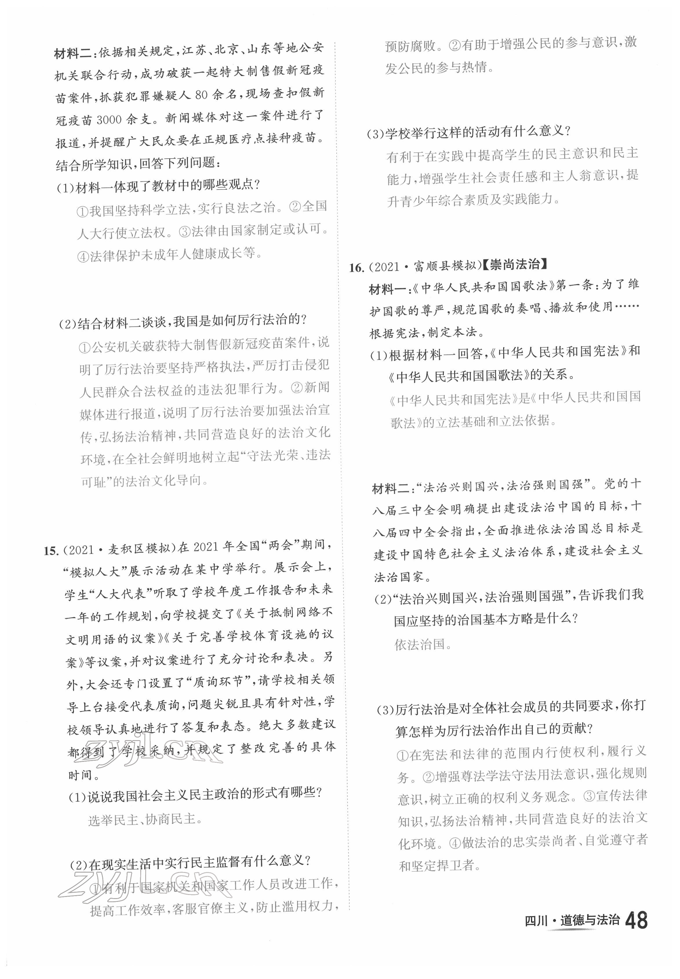 注:目前有些书本章节名称可能整理的还不是很完善,但都是按照顺序排列的,请同学们按照顺序仔细查找。练习册 2022年中考2号道德与法治四川专版 答案主要是用来给同学们做完题方便对答案用的,请勿直接抄袭。