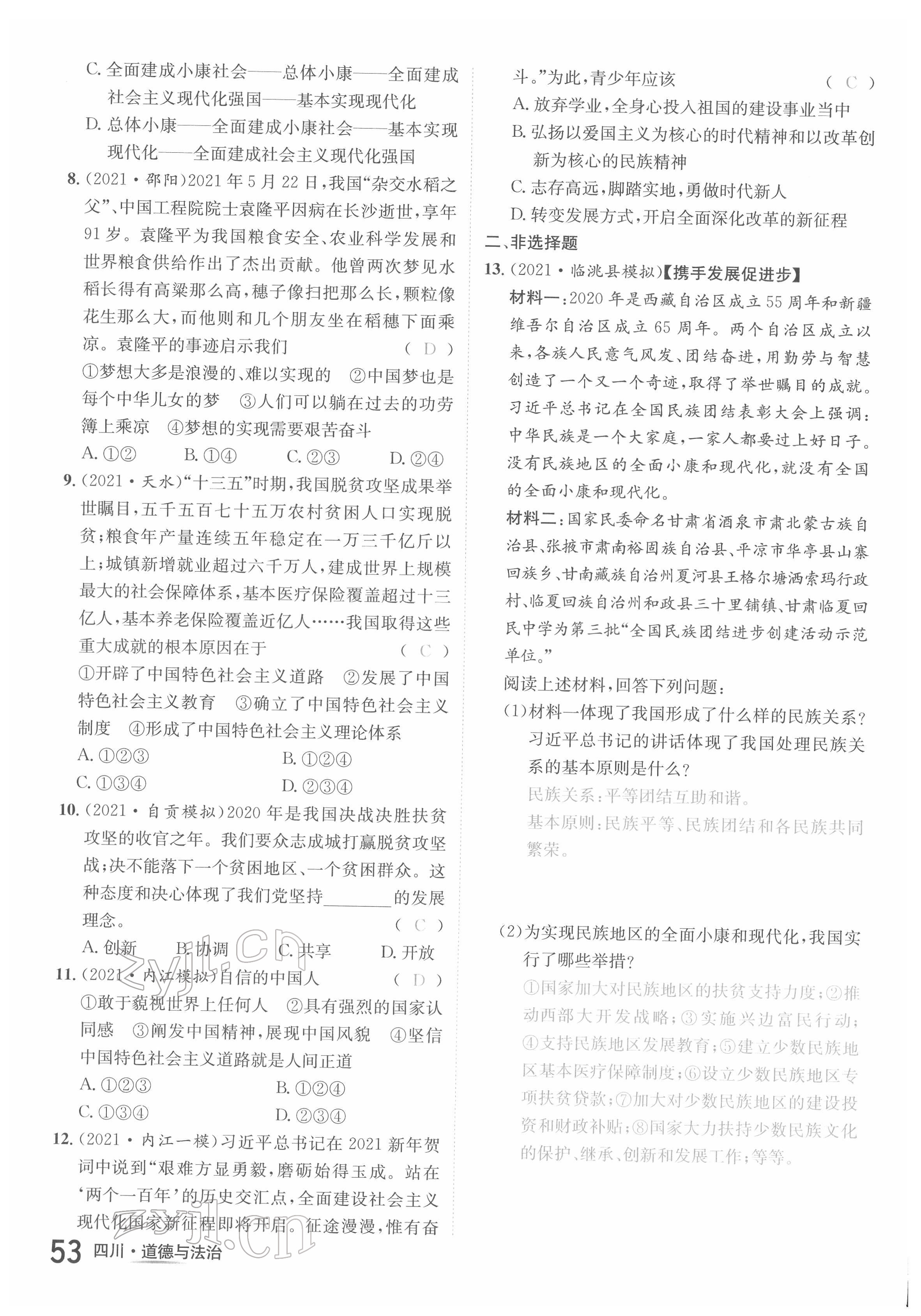 注:目前有些书本章节名称可能整理的还不是很完善,但都是按照顺序排列的,请同学们按照顺序仔细查找。练习册 2022年中考2号道德与法治四川专版 答案主要是用来给同学们做完题方便对答案用的,请勿直接抄袭。