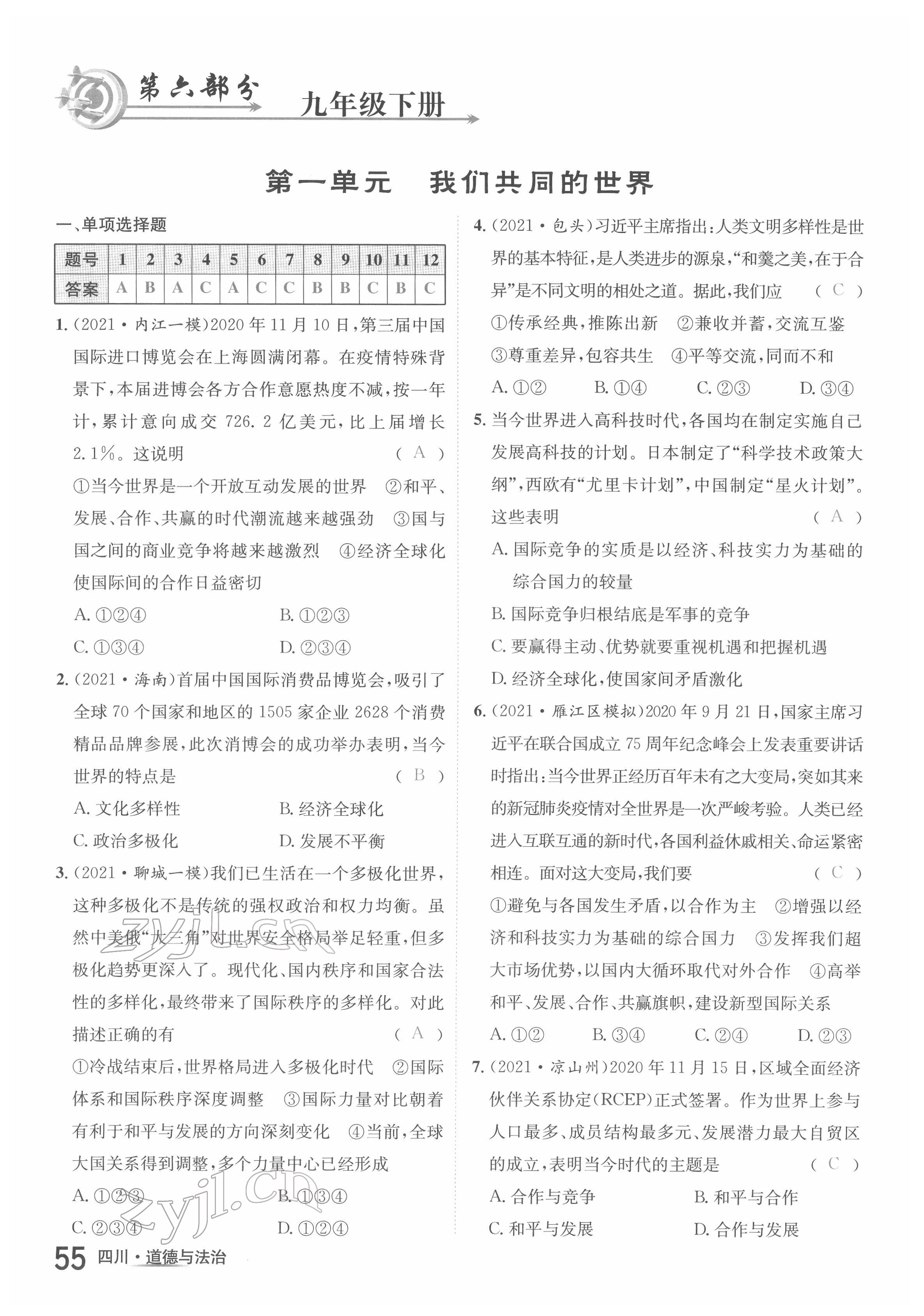 注:目前有些书本章节名称可能整理的还不是很完善,但都是按照顺序排列的,请同学们按照顺序仔细查找。练习册 2022年中考2号道德与法治四川专版 答案主要是用来给同学们做完题方便对答案用的,请勿直接抄袭。